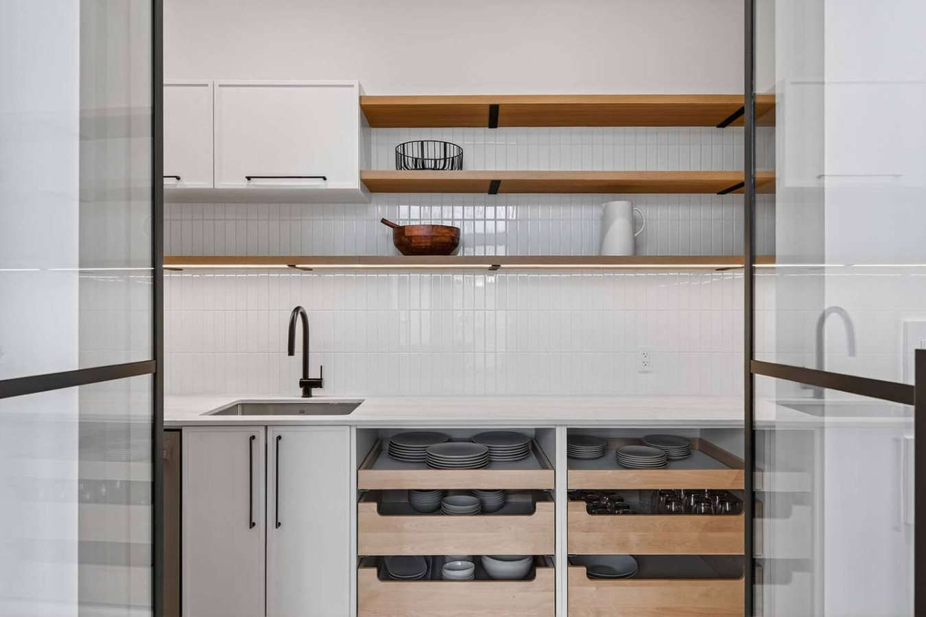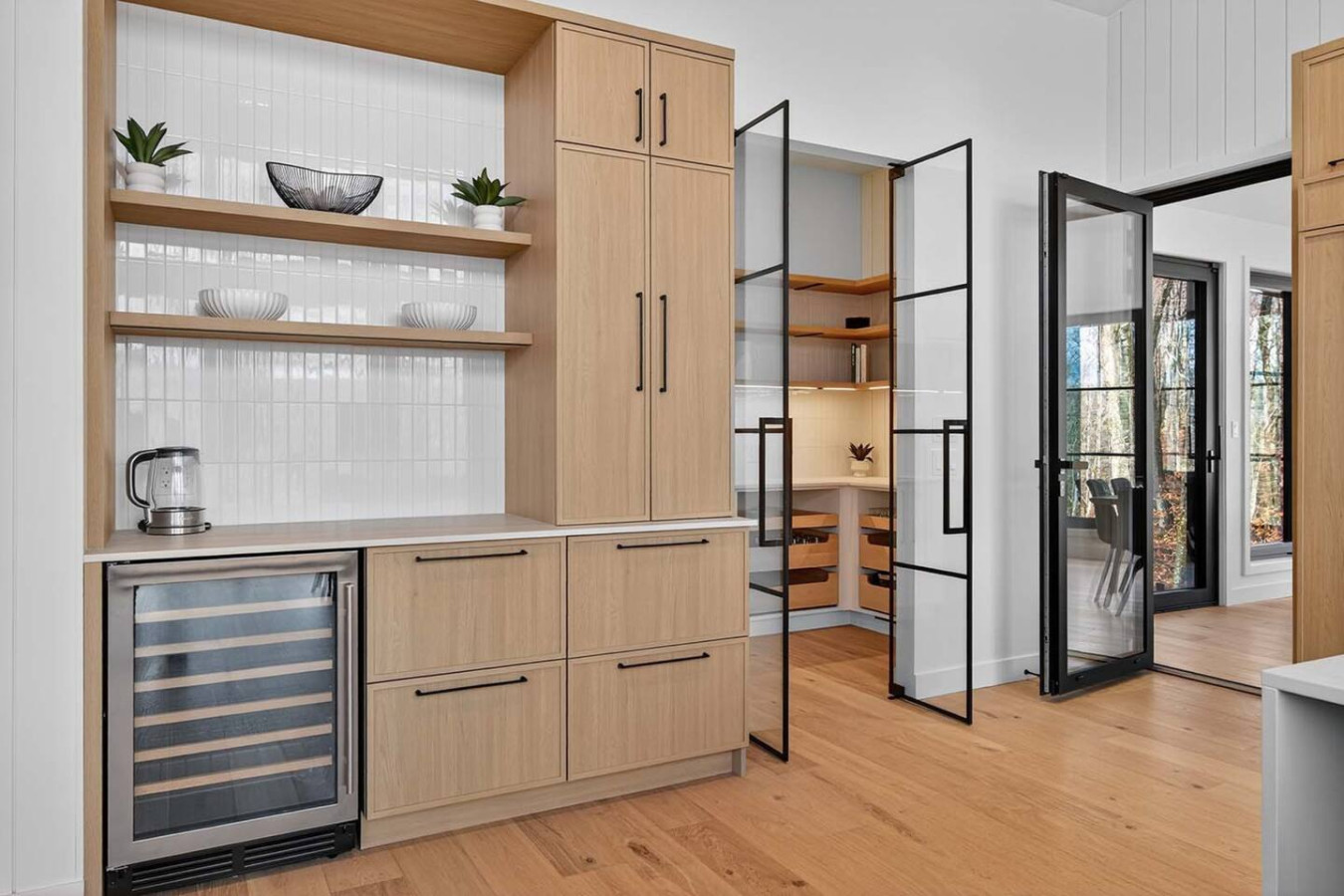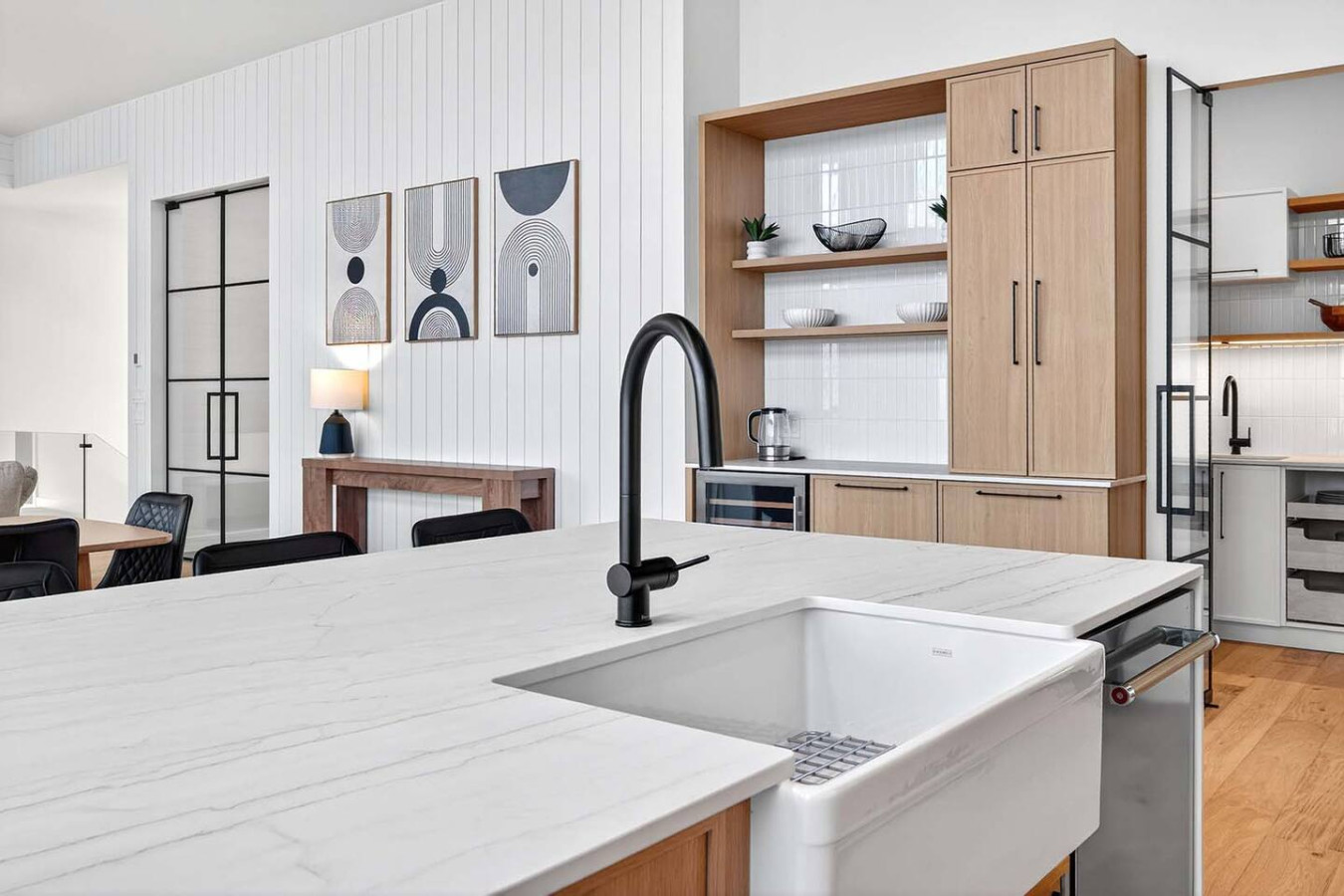 The fully equipped kitchen has everything you need to cook your own meals, including a BBQ, double oven, and both a Nespresso and drip coffee maker. You will also find a chef’s kitchen to the side for additional food storage.