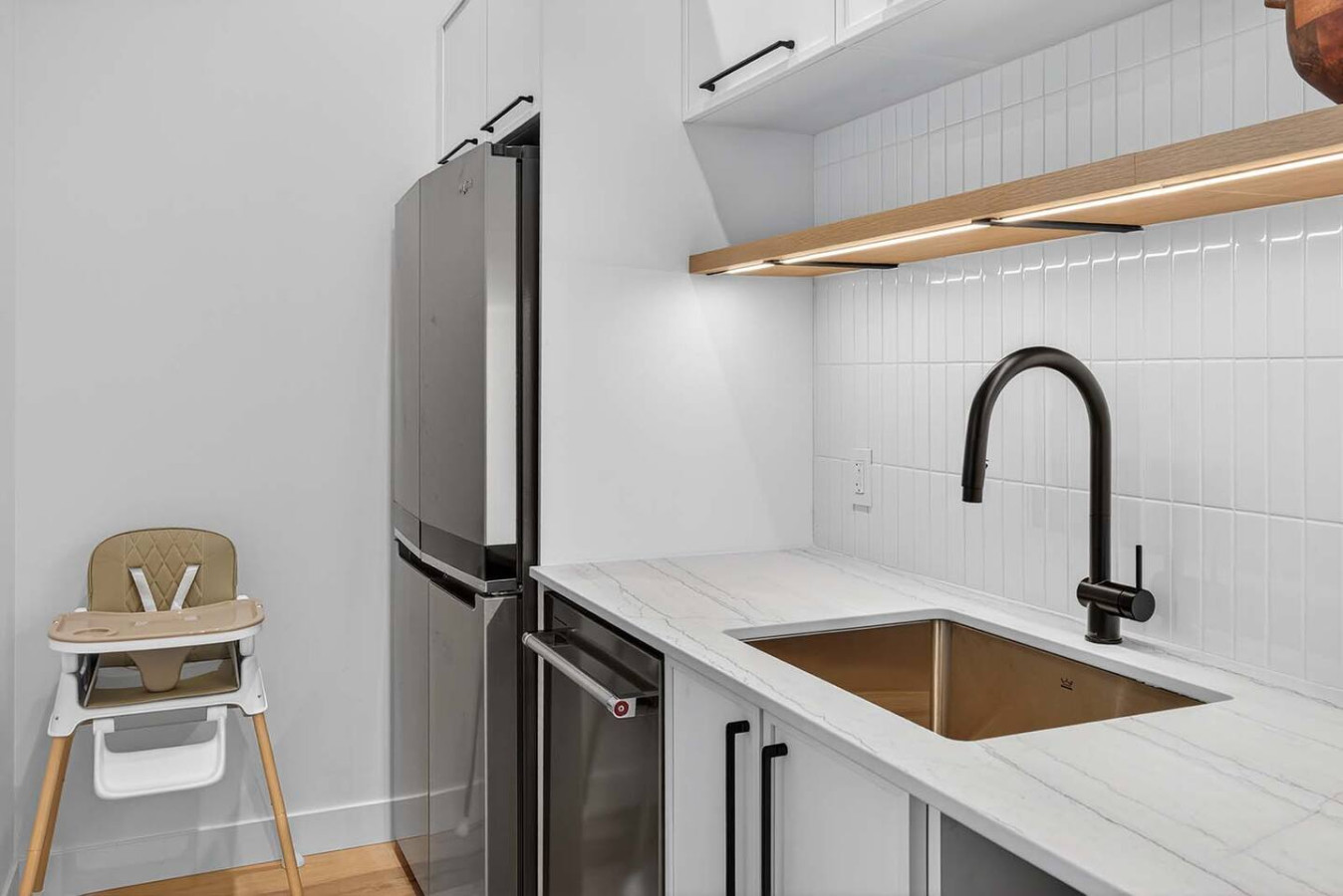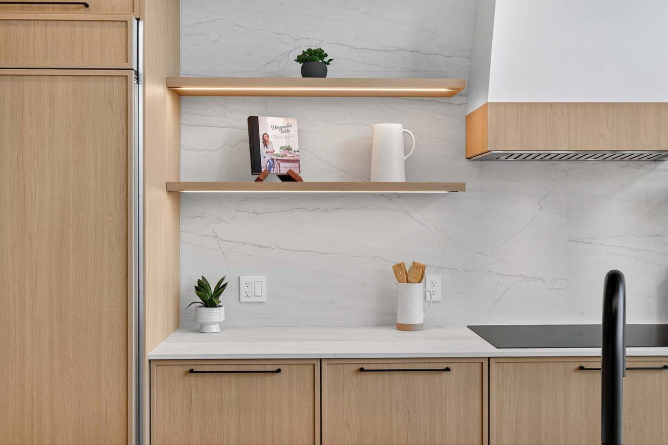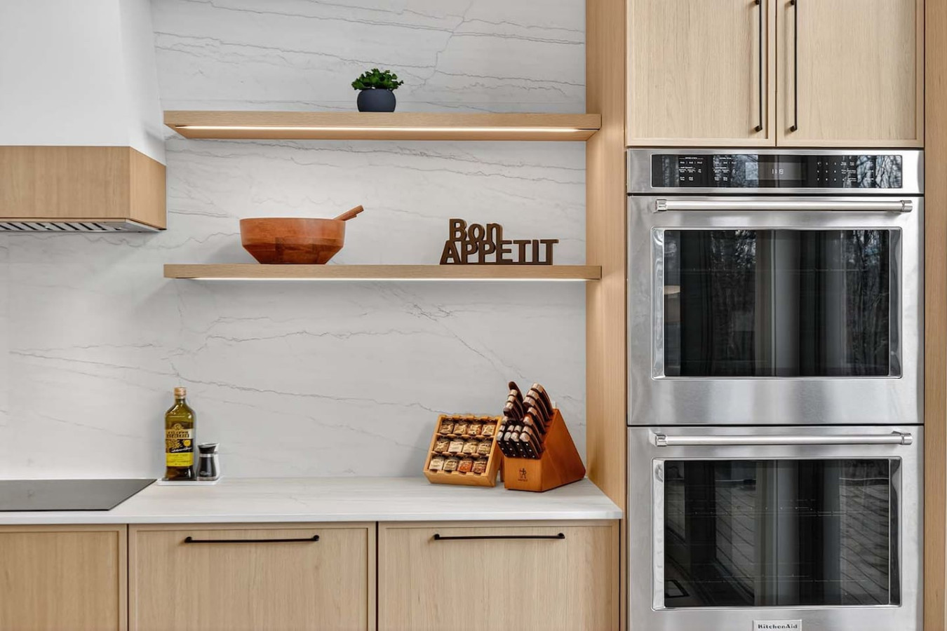 The fully equipped kitchen has everything you need to cook your own meals, including a BBQ, double oven, and both a Nespresso and drip coffee maker. You will also find a chef’s kitchen to the side for additional food storage.