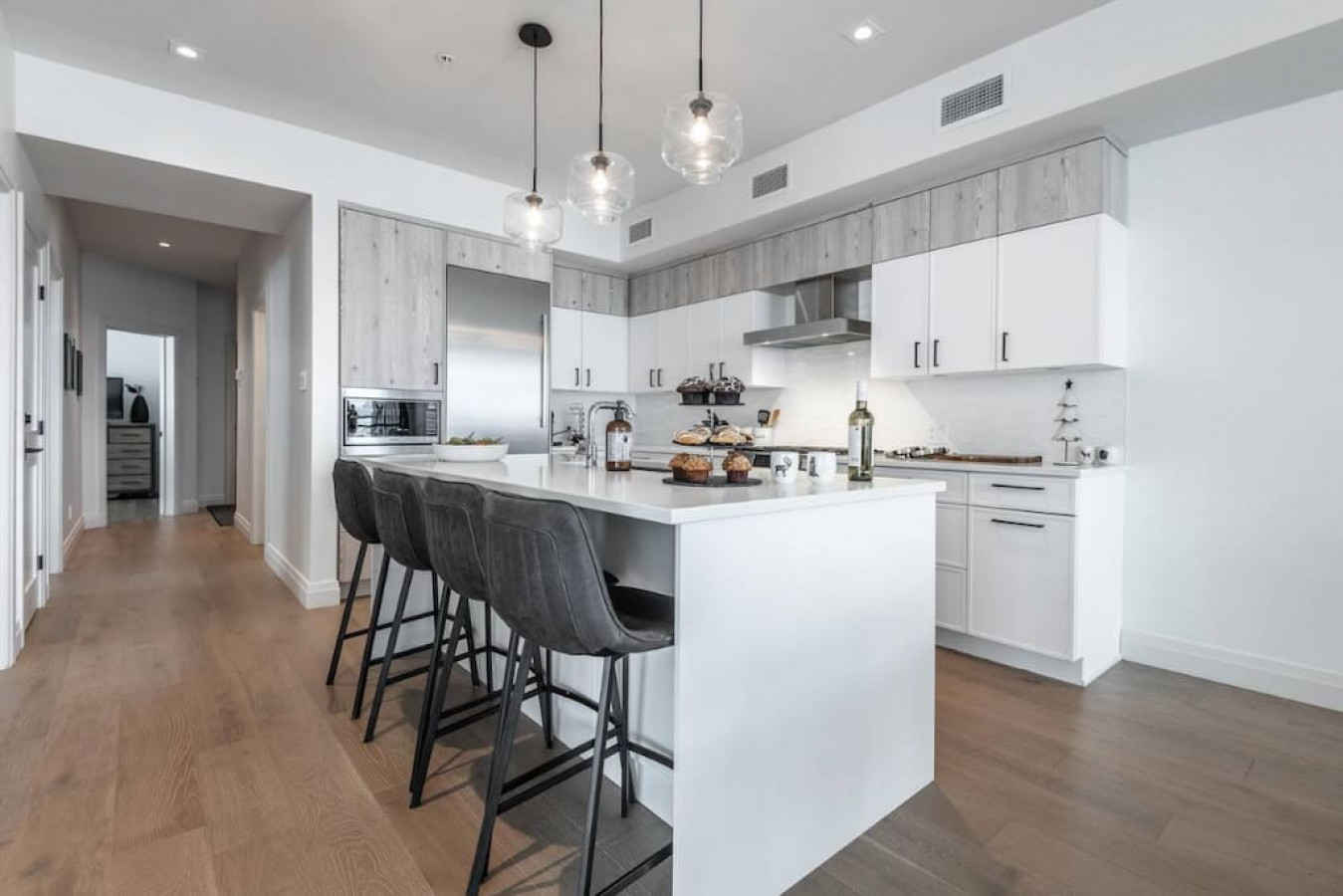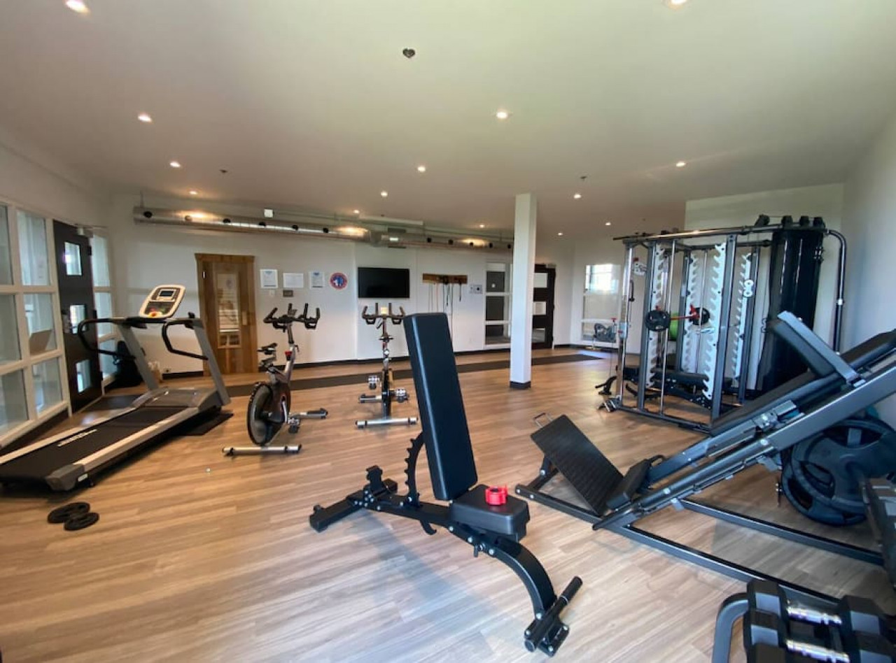 This modern, fully equipped condo sleeps up to 8 guests (6 adults max) with one king bed and two rooms each featuring a queen bed. Relax after a day outdoors in the shared hot tub, dry sauna, or gym, and enjoy two indoor parking spots with EV chargers.