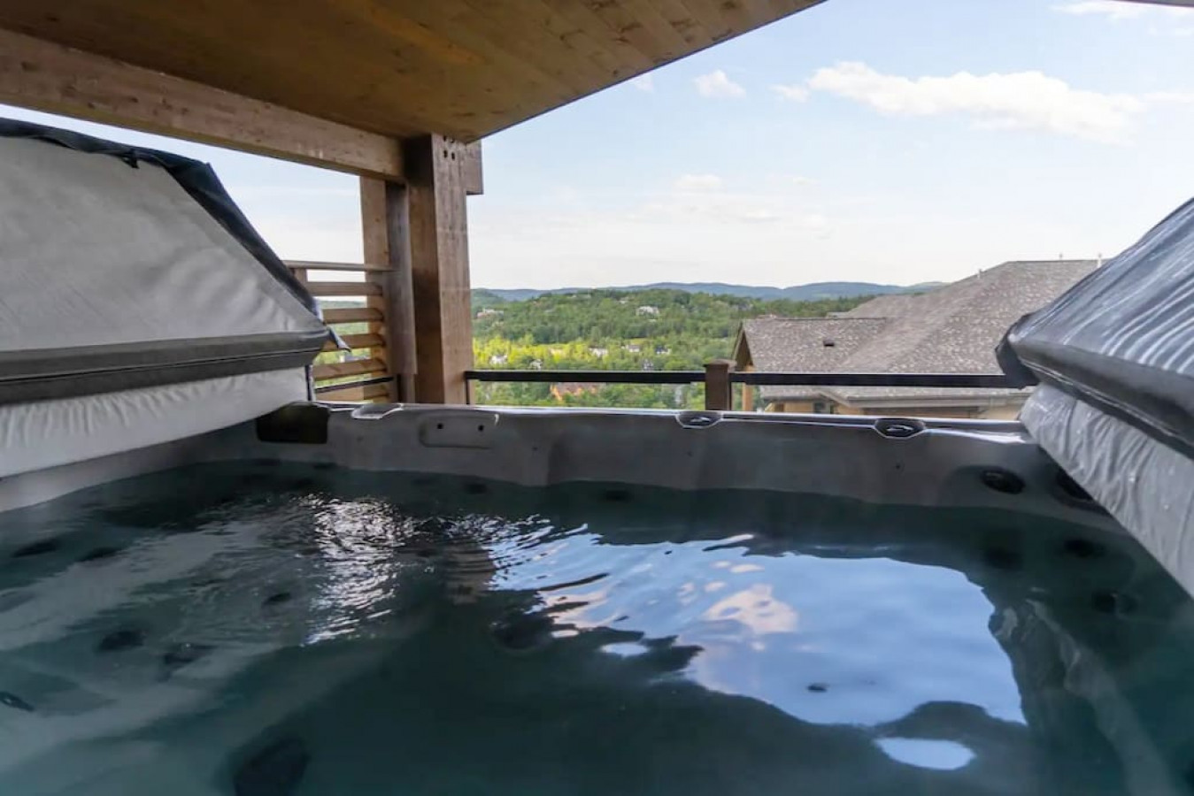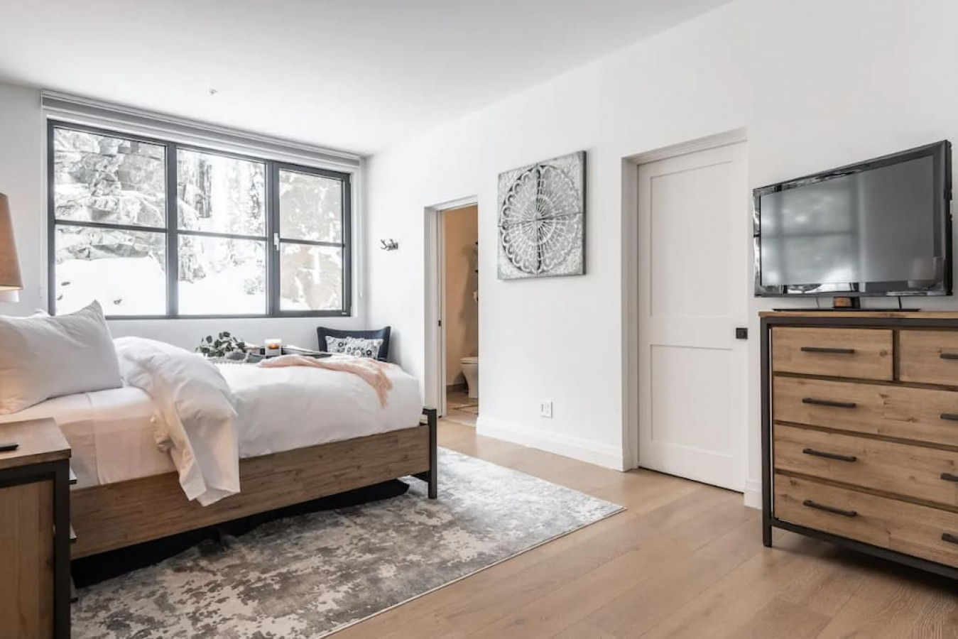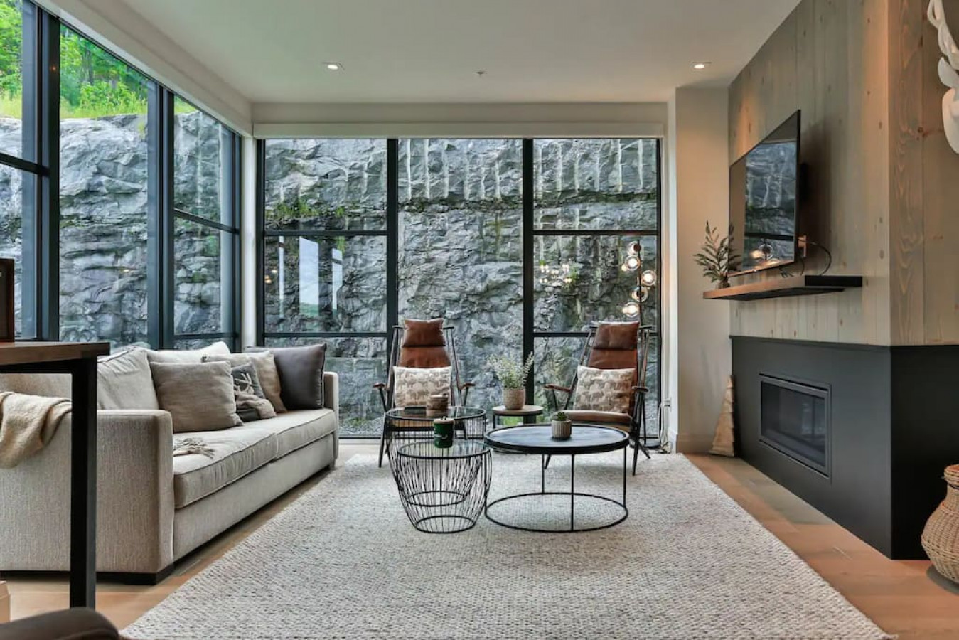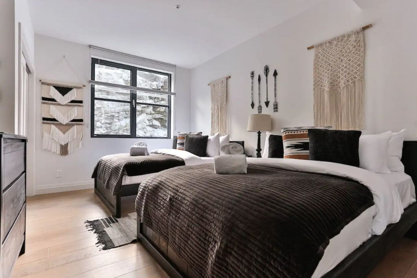 Ce condo moderne et entièrement équipé peut accueillir jusqu'à 8 personnes (6 adultes maximum) avec un lit king-size et deux chambres équipées chacune d'un lit queen-size. Après une journée en plein air, détendez-vous dans le jacuzzi commun, le sauna sec ou la salle de sport, et profitez de deux places de parking couvertes avec chargeurs pour véhicules électriques.