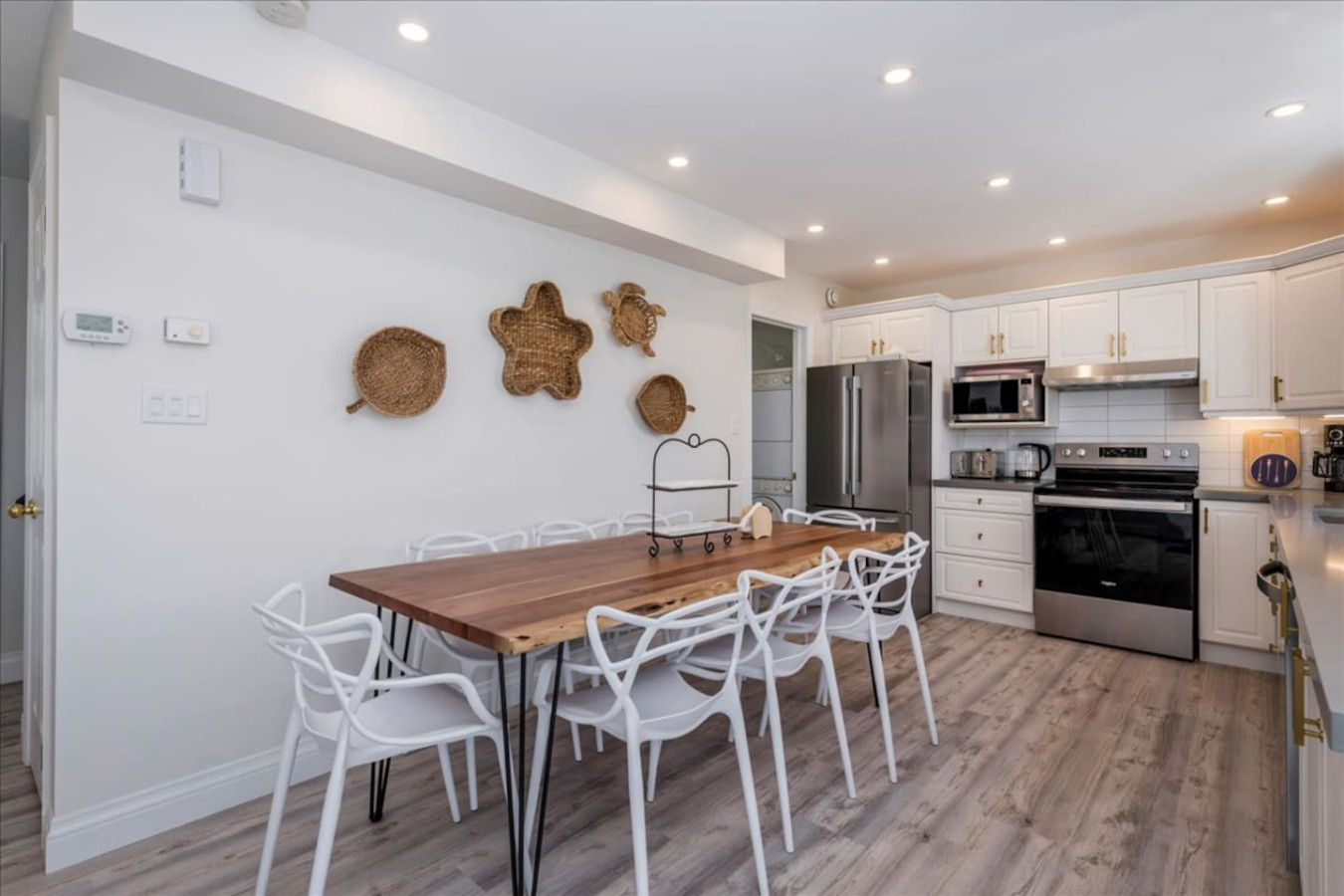 The kitchen is fully equipped with all the essentials for preparing meals at home, including a full-size fridge, stove, oven, microwave, coffee maker, cookware, and utensils—perfect for everything from hearty winter breakfasts to summer BBQ sides. All you need to bring is Nespresso coffee pods, your preferred cooking oil, and seasonings!