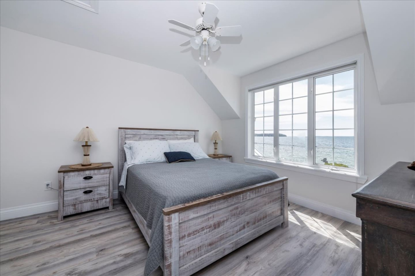Upstairs, you’ll find two comfortable bedrooms, both with Queen beds. Both offer a lake view, making it the perfect wake-up spot. The home includes a full bathroom with a shower and a second half bathroom. Shampoo/conditioner is not supplied. Linens and basic toiletries are provided for your stay.