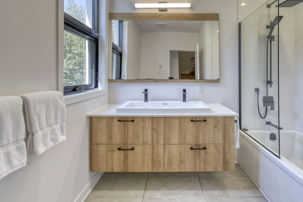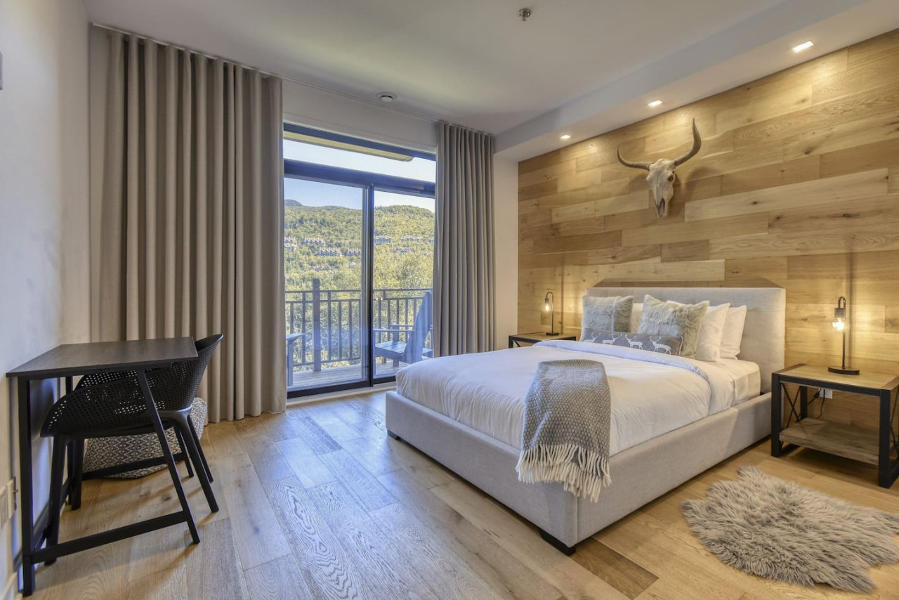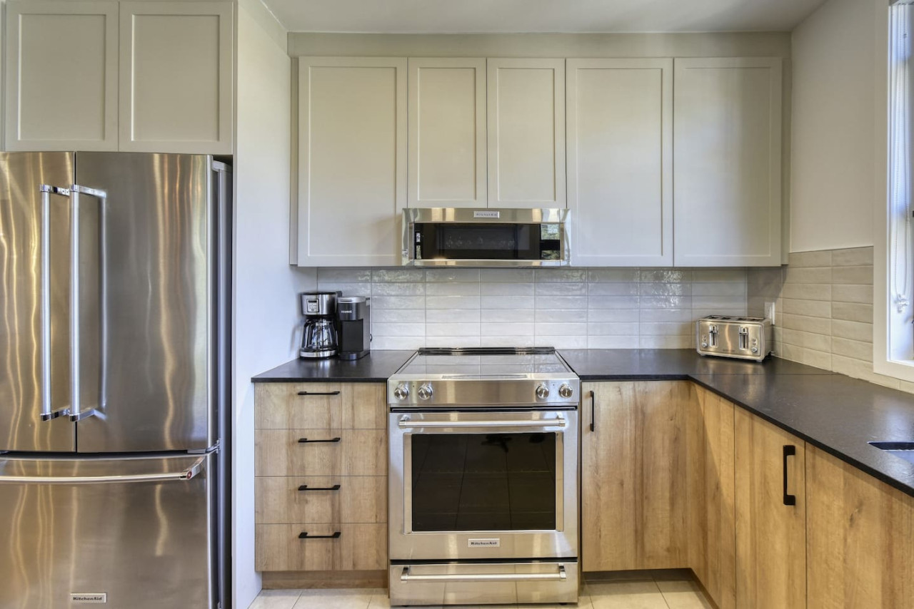 La cuisine est entièrement équipée de tout le nécessaire : ustensiles de cuisine, ustensiles de cuisson, couverts, vaisselle, machine à café Keurig et cafetière goutte à goutte. Il vous suffit de vous fournir en nourriture et en épices ! La salle à manger peut accueillir 8 personnes, ce qui permet à tout le monde de se réunir les soirs où vous ne mangez pas dans l'un des restaurants locaux de Tremblant. Des portes coulissantes en verre permettent d'accéder facilement au balcon privé, équipé d'un barbecue et de sièges extérieurs.