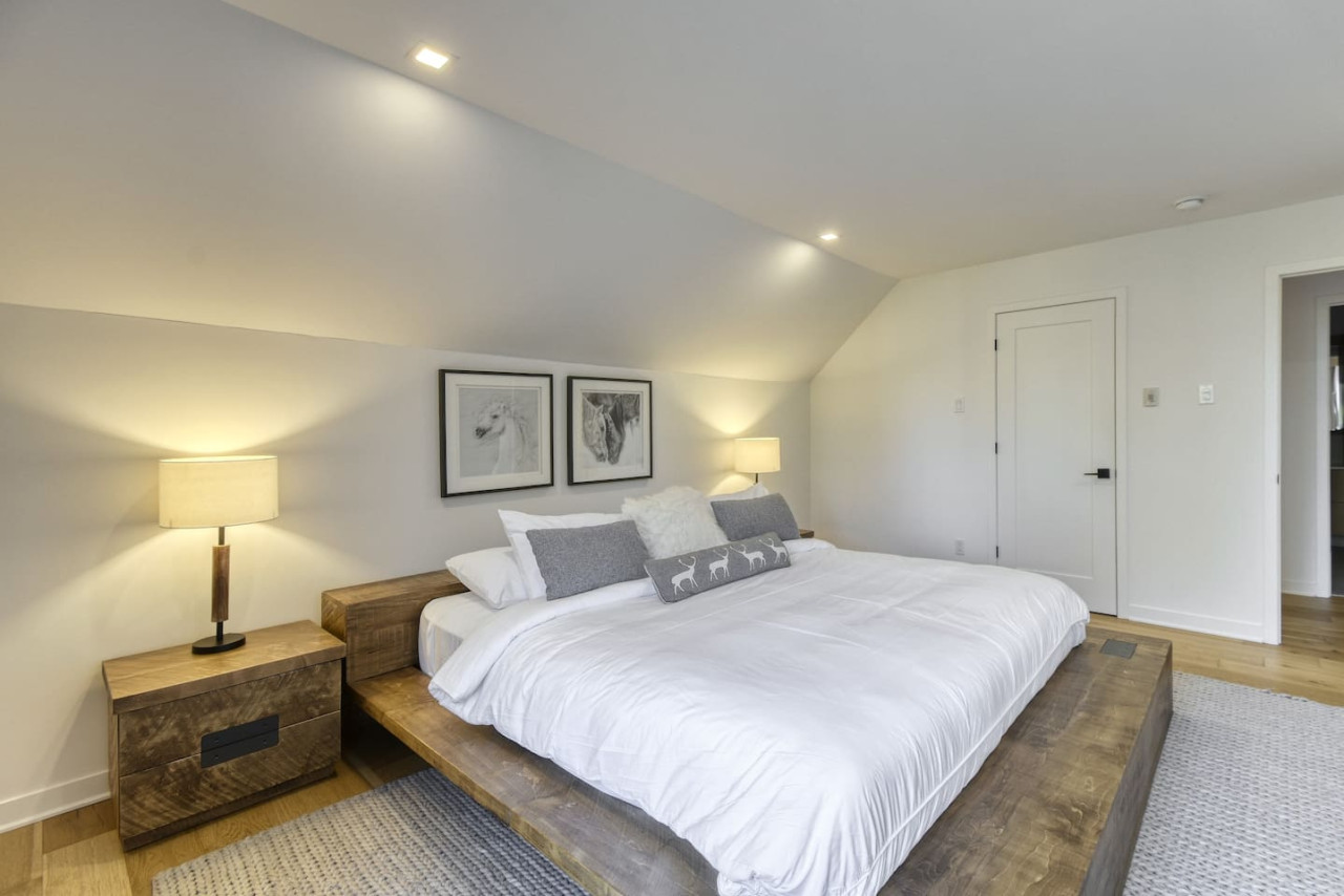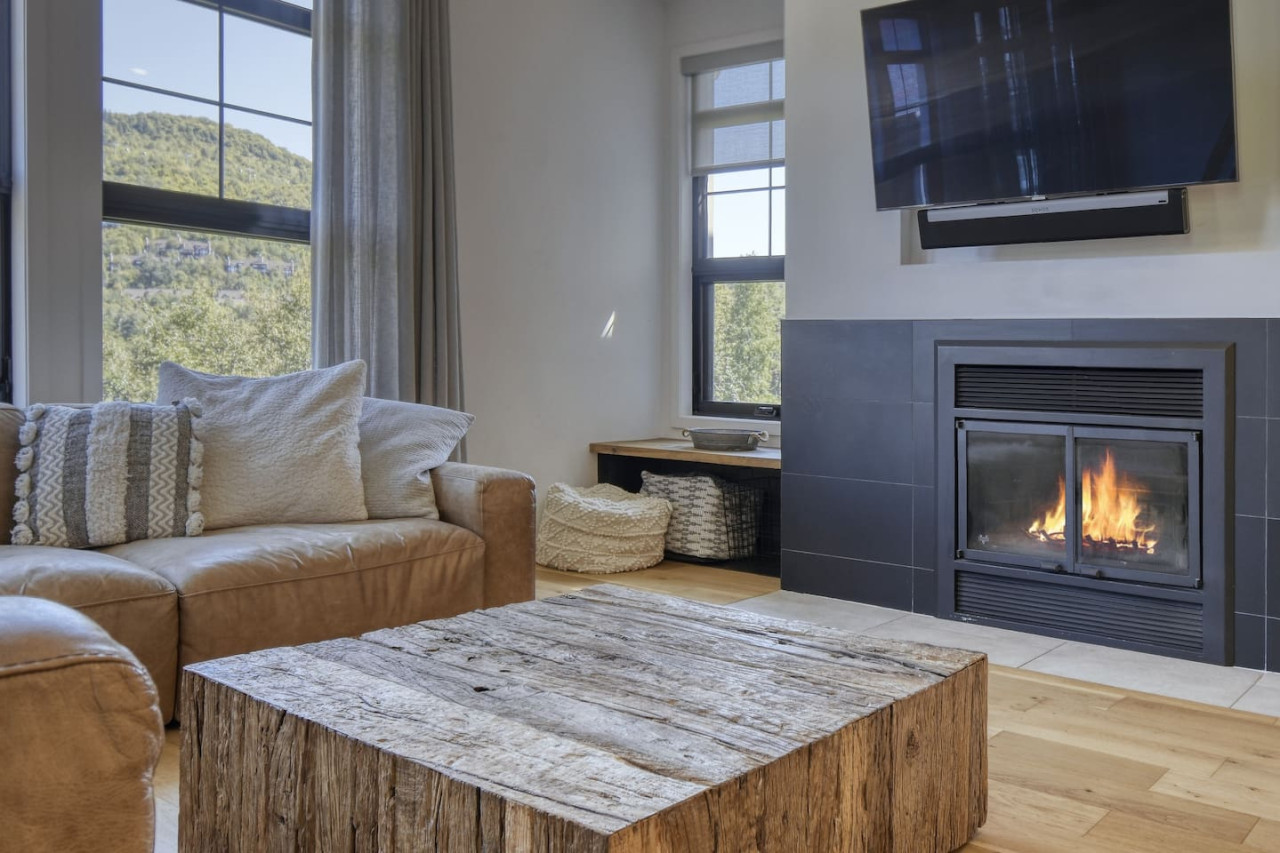 Bienvenue à Tremblant Les Eaux, où des vues époustouflantes sur le terrain de golf et les montagnes vous entourent dans ce quartier pittoresque situé à quelques minutes du cœur du village de Tremblant. Détendez-vous avec style dans cette spacieuse résidence de quatre chambres à coucher et deux salles de bain, dotée d'un chaleureux foyer au bois et de trois balcons privés. Profitez de la piscine communautaire saisonnière, détendez-vous dans le bain à remous ou prenez la navette gratuite pour explorer le village animé et ses innombrables activités.