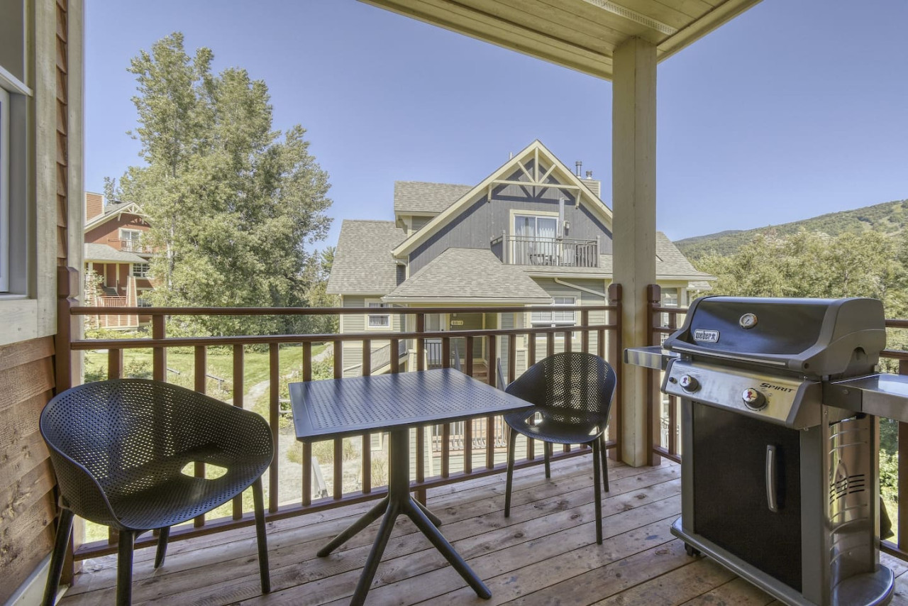 The kitchen is fully equipped with cookware, bakeware, cutlery, utensils, and a Keurig and drip coffee maker - all you need is your food and spices! The dining area seats 8, so everyone can get together on those nights when you're not dining at one of Tremblant's local restaurants. Sliding glass doors provide easy access to the private balcony, complete with BBQ and outdoor seating.