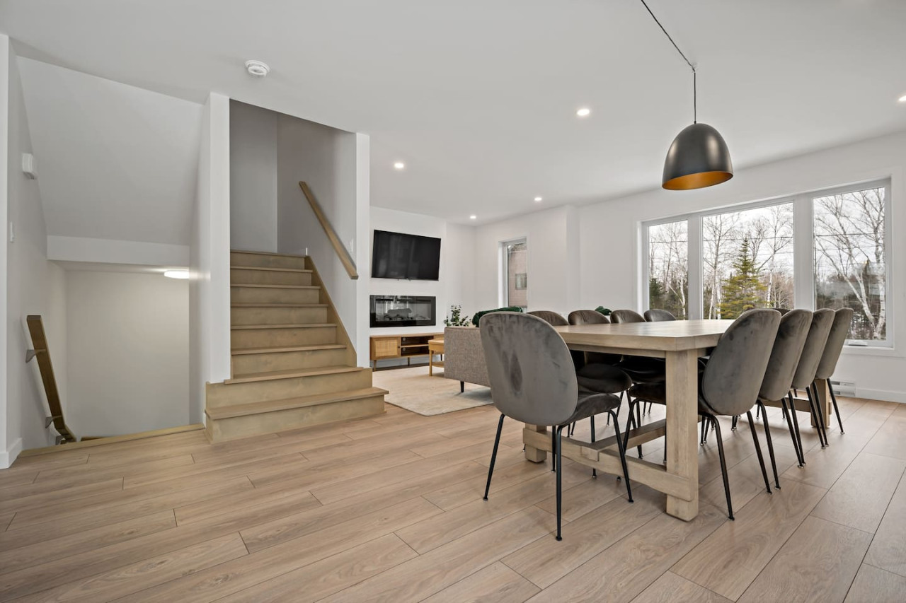 Bienvenue au Mont-Blanc, une véritable maison de ville skis aux pieds ! Détendez-vous avec style dans cette spacieuse retraite de 4 chambres et 3,5 salles de bains, avec un espace de travail privé pour les affaires en déplacement et un sous-sol douillet pour les soirées de détente. Cette maison est un rêve pour les amateurs de plein air, avec des pistes de vélo de montagne magnifiquement entretenues, accessibles par remontée mécanique au MBPark Mont-Blanc. Vous disposez également d'un bain à remous privé et d'un accès à la piscine creusée commune pendant les mois d'été. À 5 minutes en voiture de Saint-Jovite, vous êtes à proximité des meilleurs restaurants et boutiques de Tremblant.