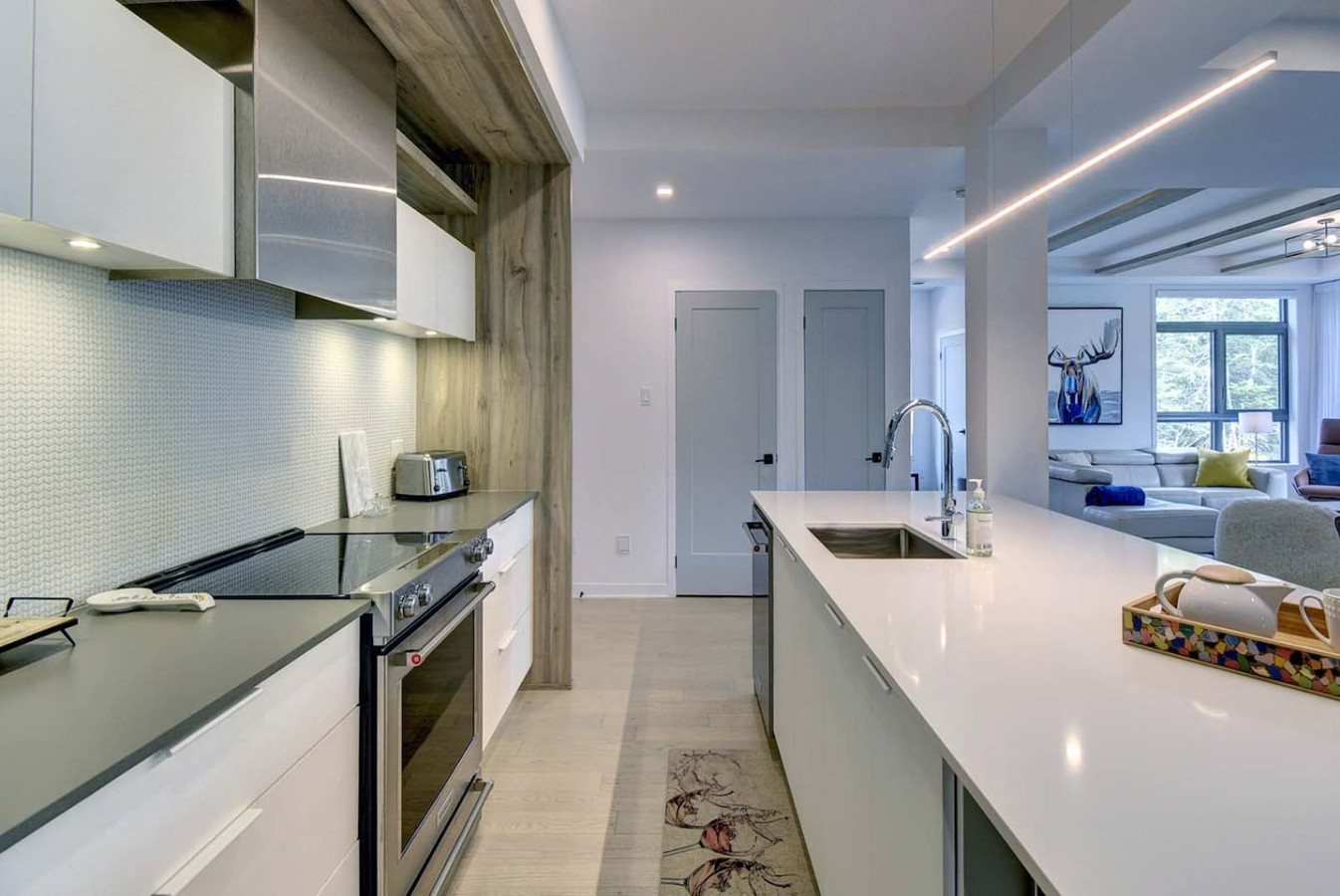 The kitchen has everything you need to prepare your own meals, including appliances and cutlery. You can enjoy the flexibility and convenience of cooking during your stay, or enjoy take out from the many local restaurants in Tremblant. There is a drip coffee maker with coffee supplied in limited quantities.