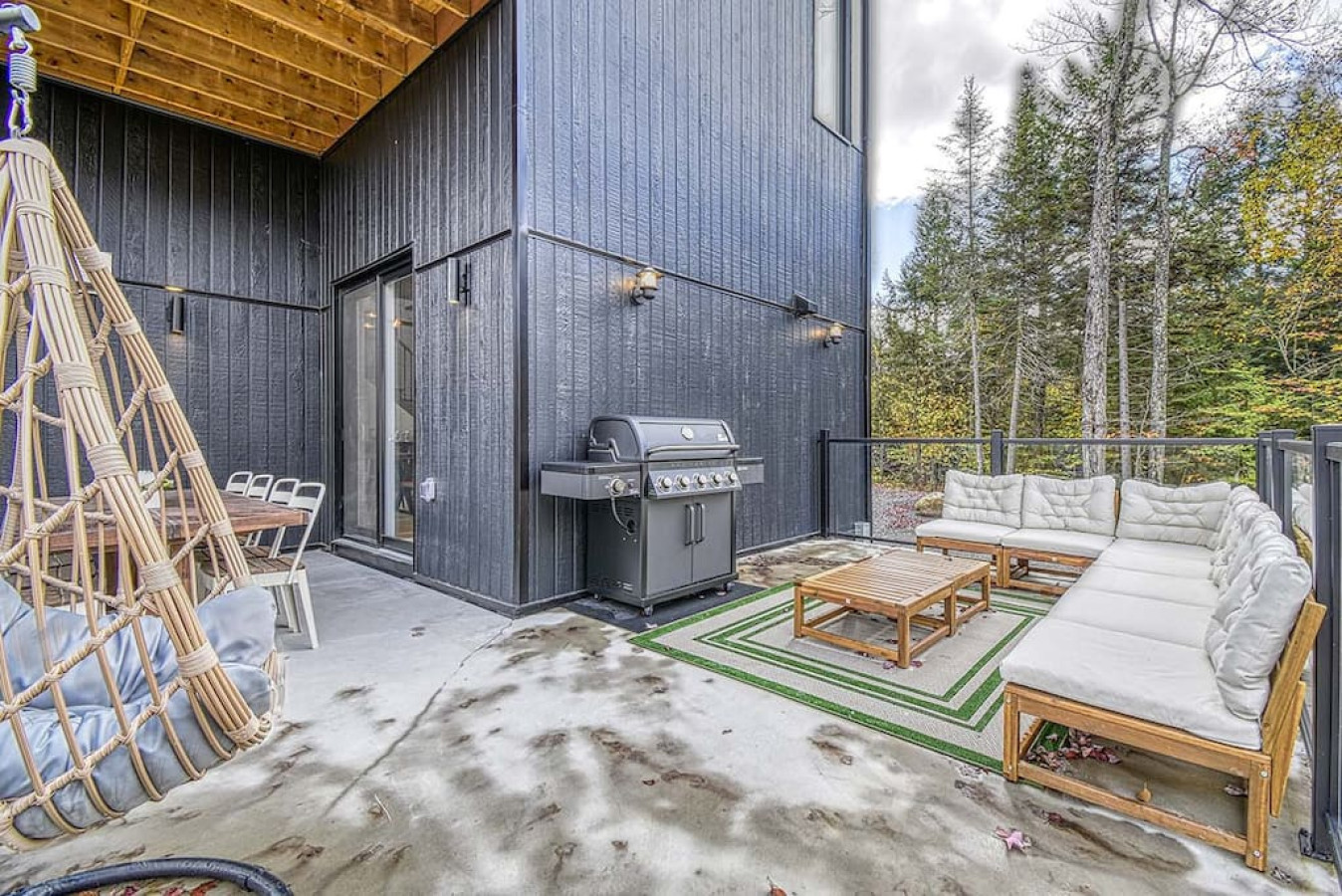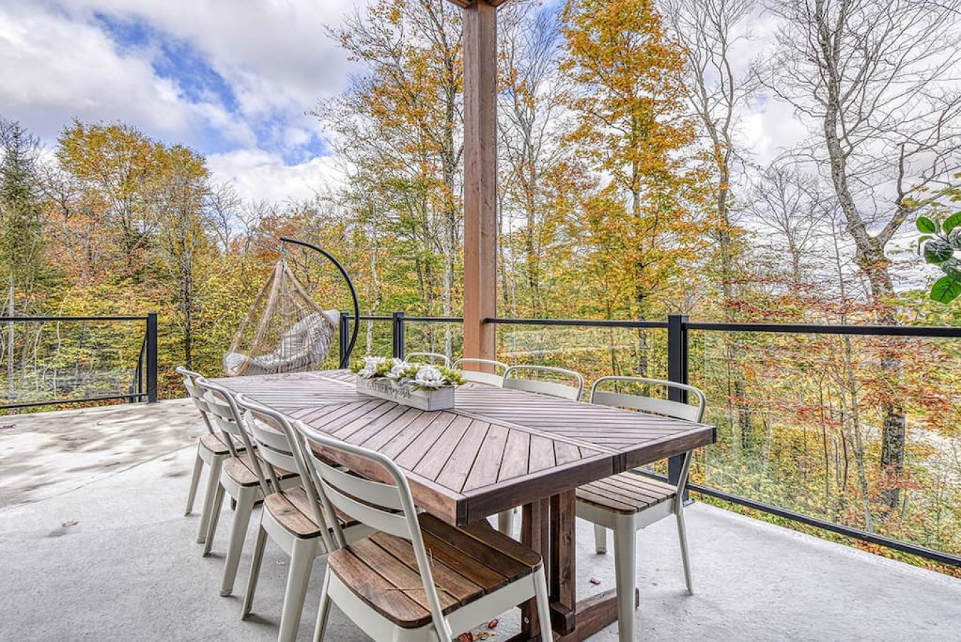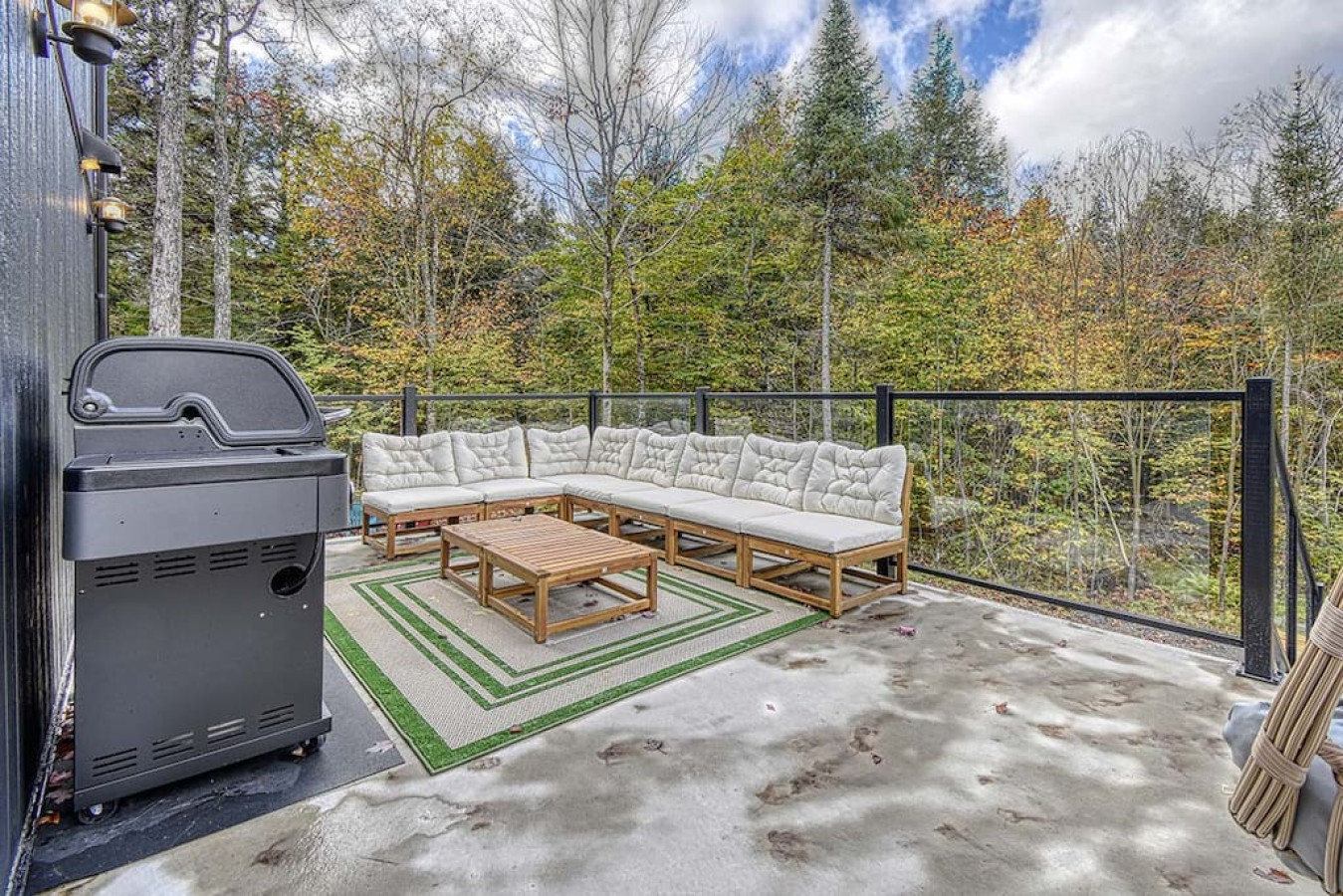 Détendez-vous dans le jacuzzi privé, rassemblez-vous autour du foyer ou dégustez des repas au barbecue sur le balcon meublé entouré d'une vue sur la forêt.