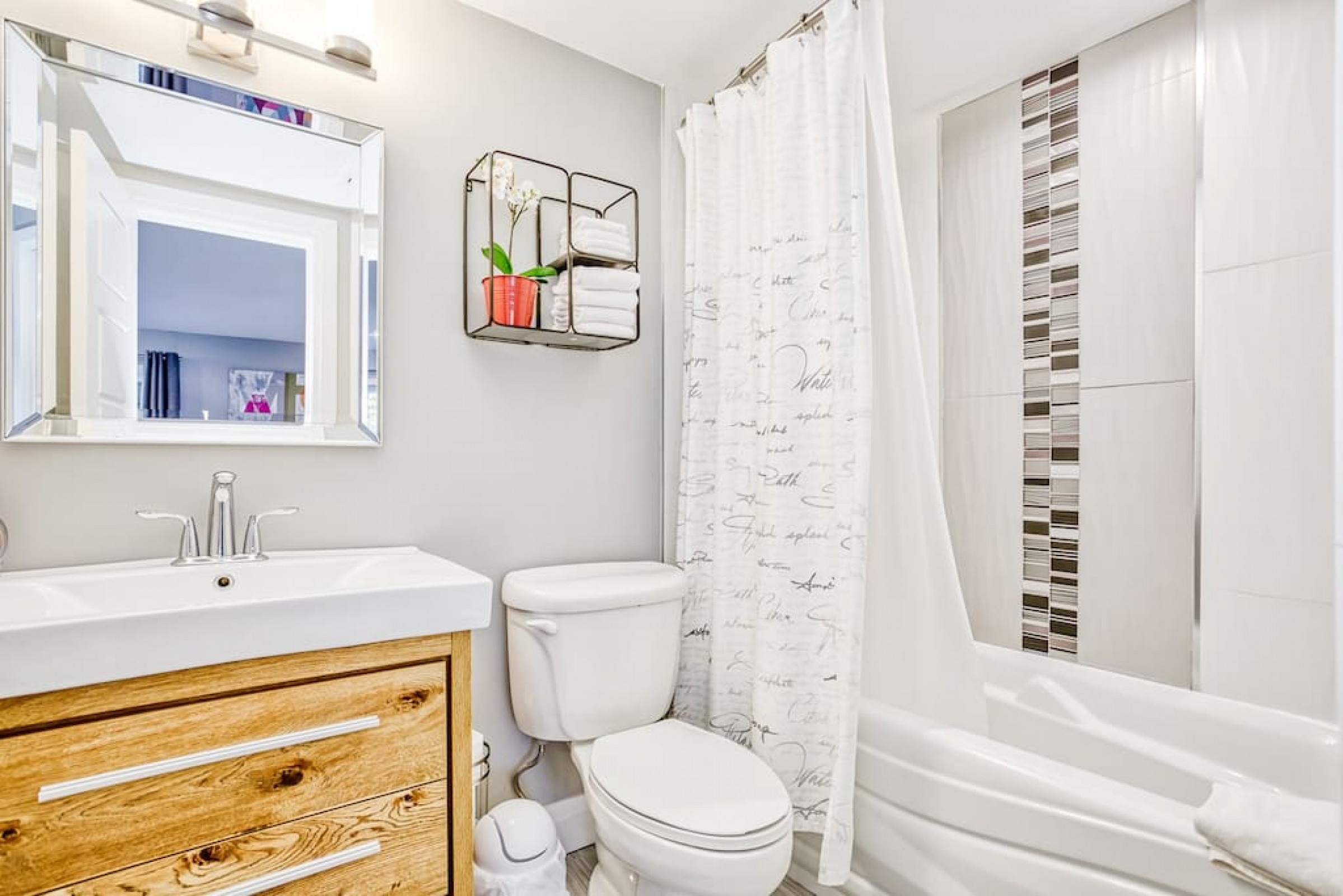 The kitchen has been updated with all stainless steel appliances and completed with all the utensils and flatware to feel at home. With lots of counter space, you will be able to cook to your hearts content. Complimentary coffee is provided with a Keurig Coffee Machine to help you get going on those early mornings.
