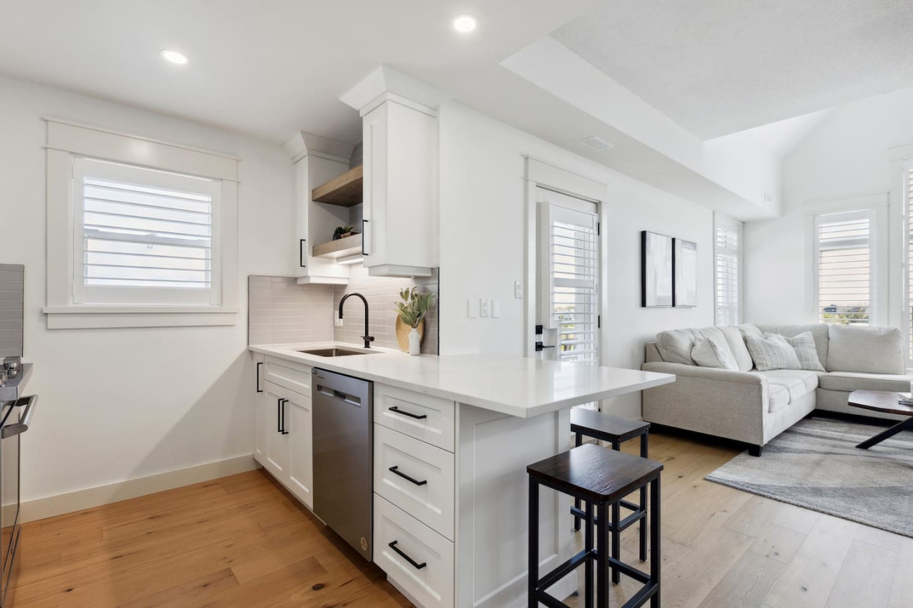 The kitchen is equipped with all cookware, bakeware, cutlery, utensils, and a Keurig coffee maker - all you need is your food, spices, and coffee pods! The dining space seats 6, allowing everyone to gather on nights you’re not dining at one of Blue’s local restaurants. The private balcony is equipped with an outdoor dining area for 4 to enjoy on warmer days.