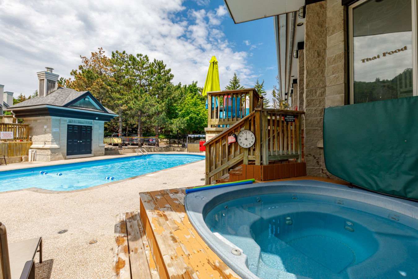 This unit includes access to the North Creek Resort shared pool (seasonal), hot tub, BBQs, and tennis courts. Coin-operated laundry facilities with washers and dryers are located in the main building #2. This is a ski in / ski out unit at the North Base of Blue Mountain. It is a 2-5 minute walk to the chairlift.