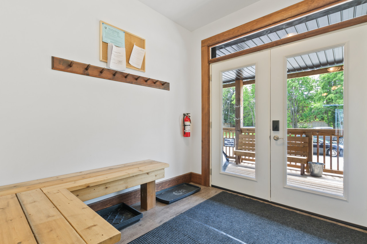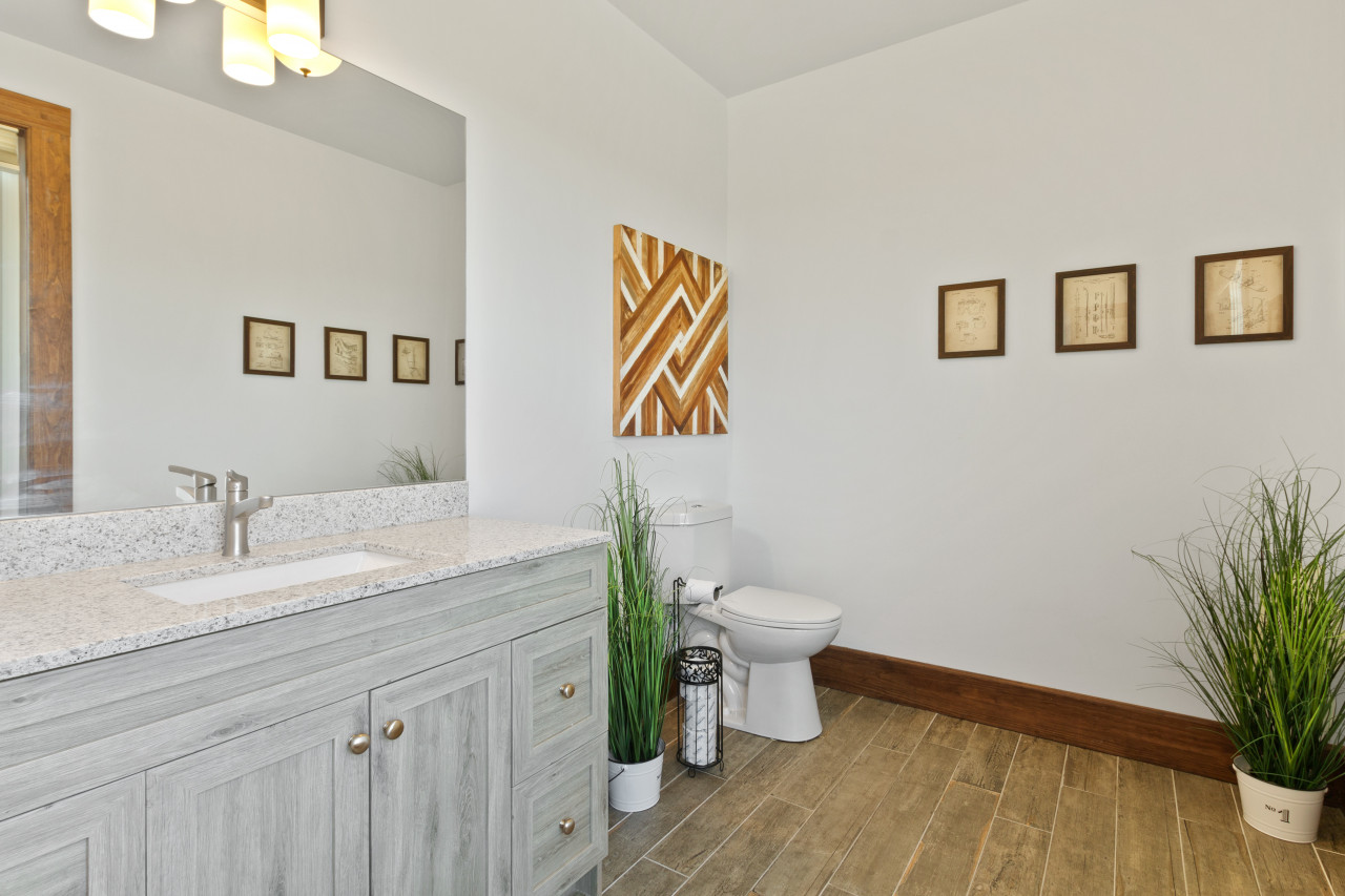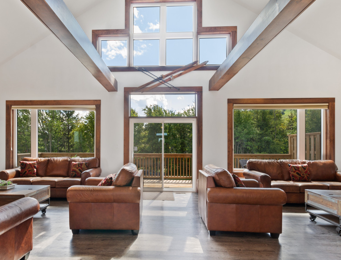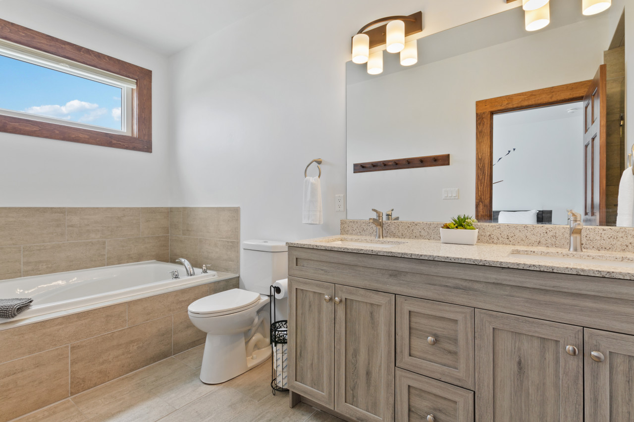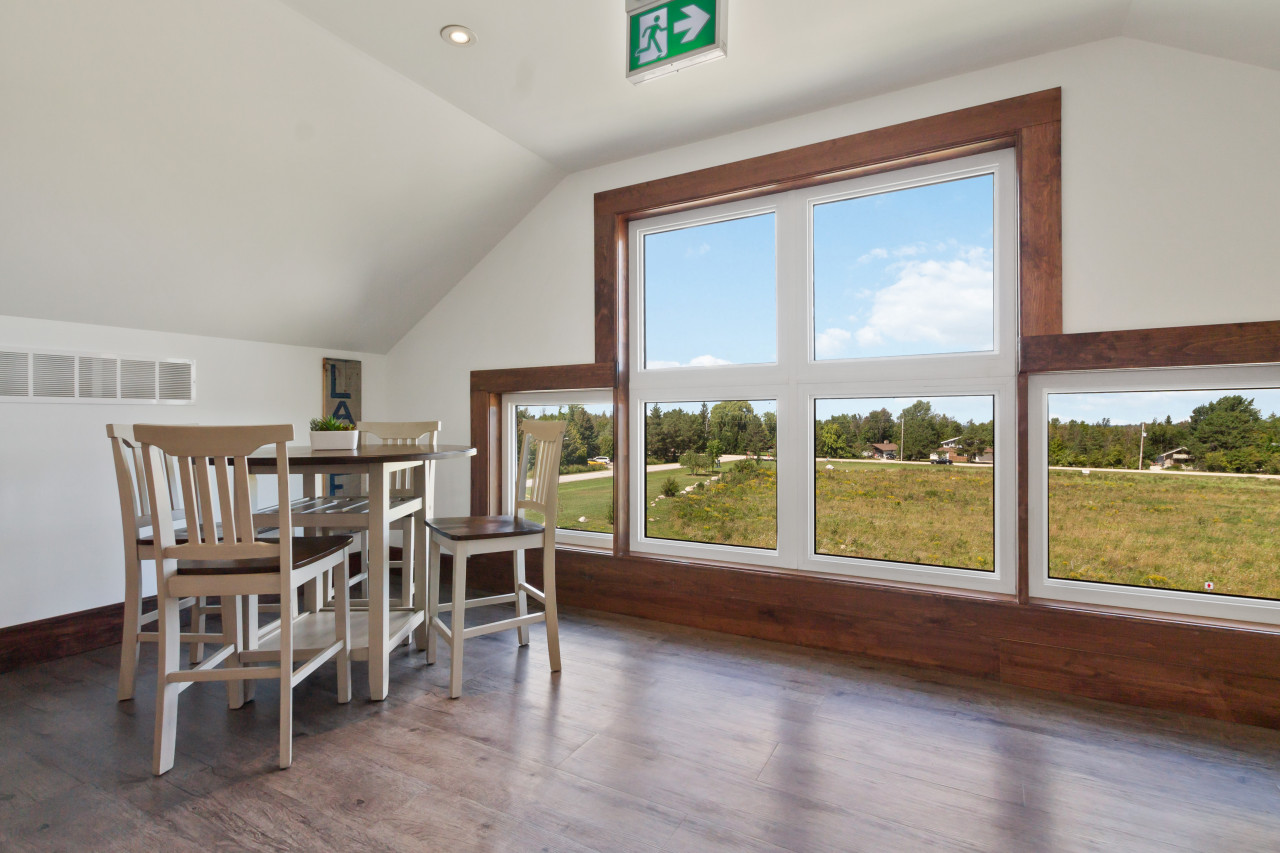 You’ll find 4 more bedrooms with light pouring in through the oversized windows on the lower level. The first hosts a double and single bed, leading to a 3 piece ensuite with a walk-in shower. The second lower bedroom offers 2 single beds, guiding you through barn doors to another bedroom with 2 single beds connecting to a 3 piece ensuite. The final bedroom contains 1 double and 1 single bed leading to a 3 pc ensuite.