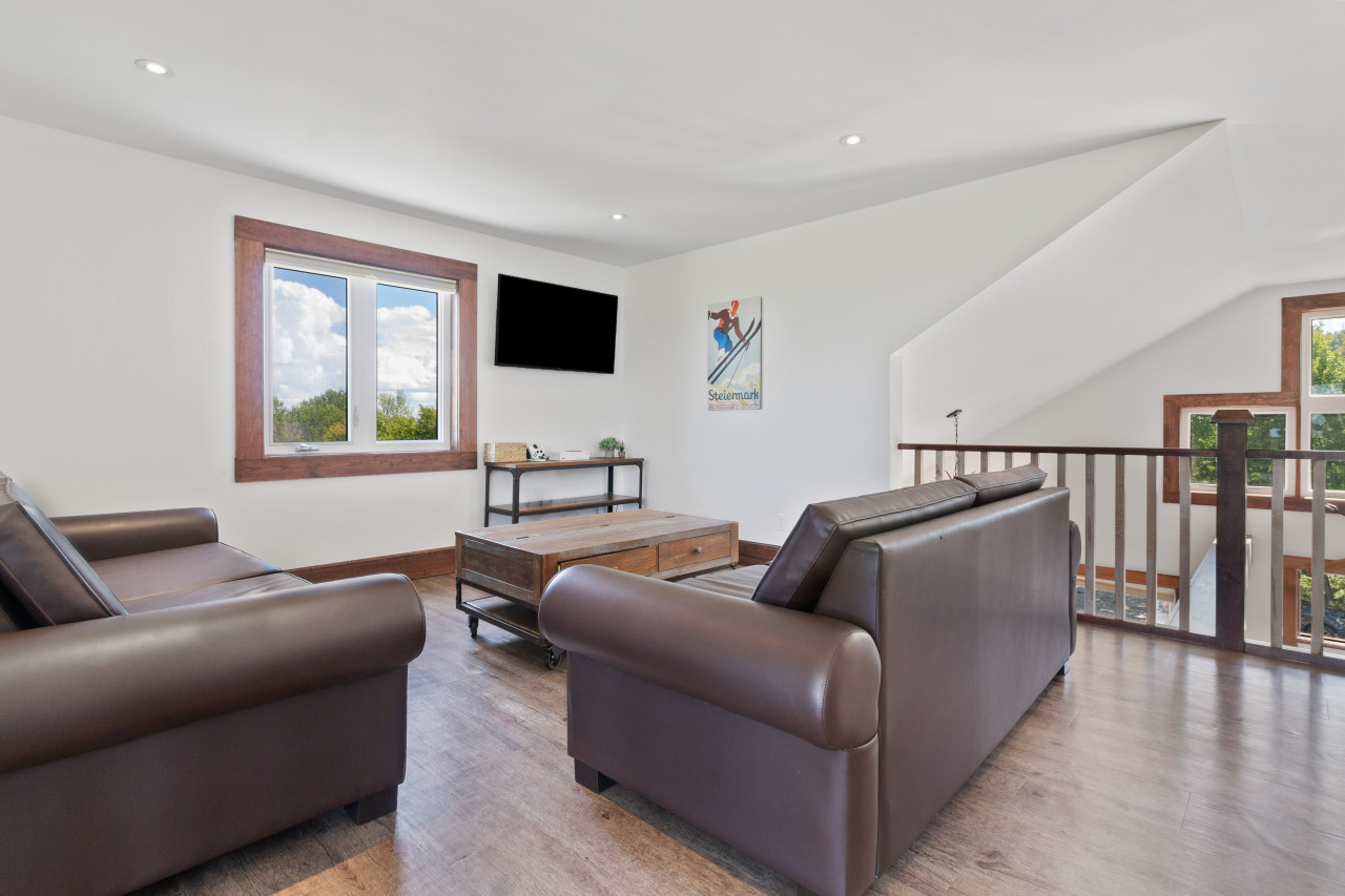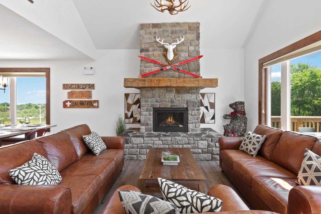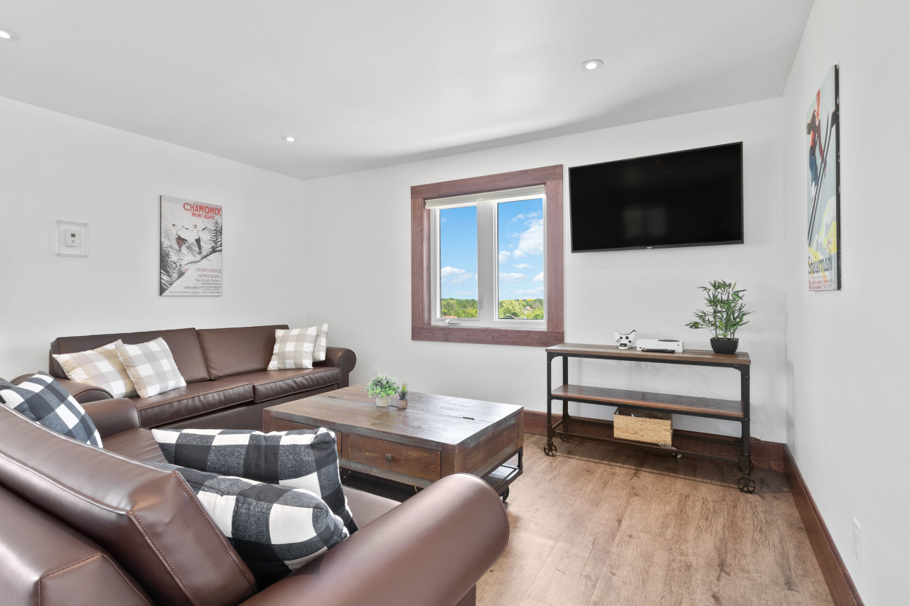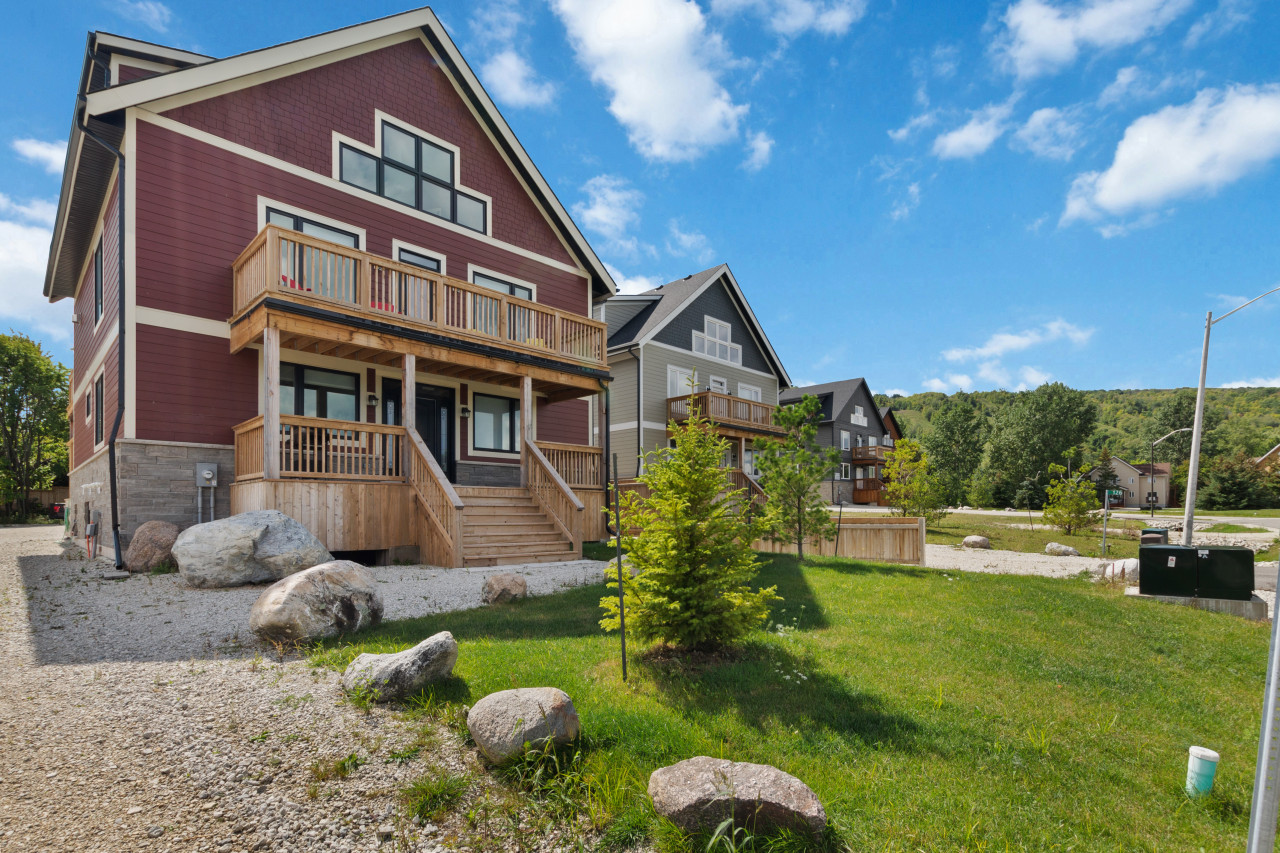 This spacious home stuns guests with its layout to maximize their entertainment space while providing comfort for sleeping arrangements. You’ll be met with ease and entertainment on the main floor with sleeping accommodations, a games room, and a walkout to a hot tub accessible on the first level. Make your way to the second floor, you’ll be greeted with soaring ceilings, both with North and South decks. The open concept area seamlessly brings together the kitchen, dining, and living space for an easy flow between cooking and relaxation. Choose to have your morning cup of coffee with breathtaking views of The Blue Mountains or BBQ on the back deck while entertaining guests under the stars. The third floor hosts a secondary entertainment space with TV, ping-pong table and cafe-style hangout near large windows, while the lower level contains 4 more bedrooms and 2 bathrooms.