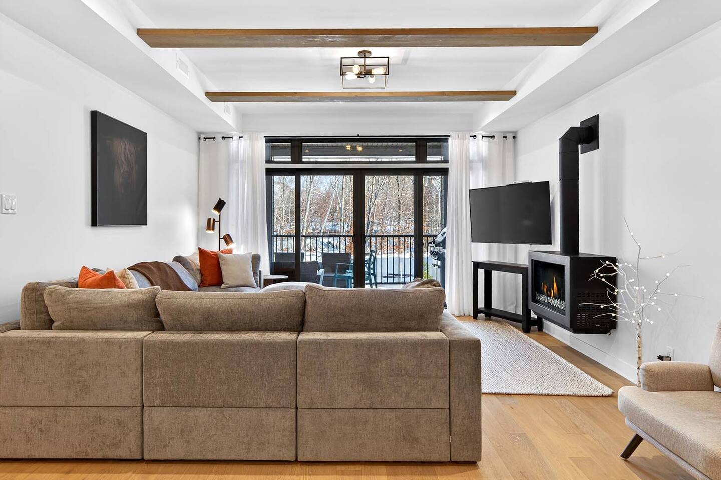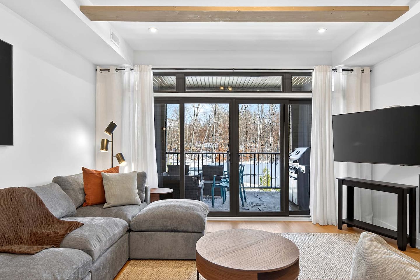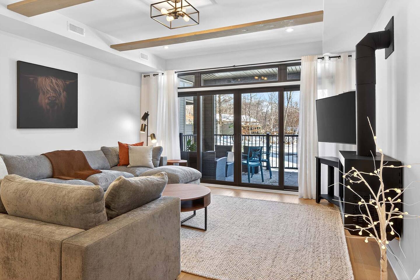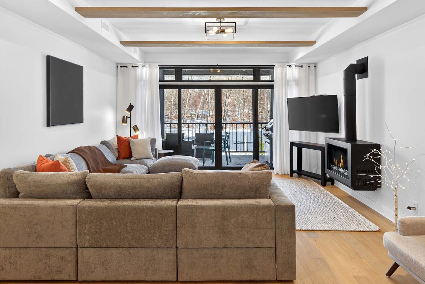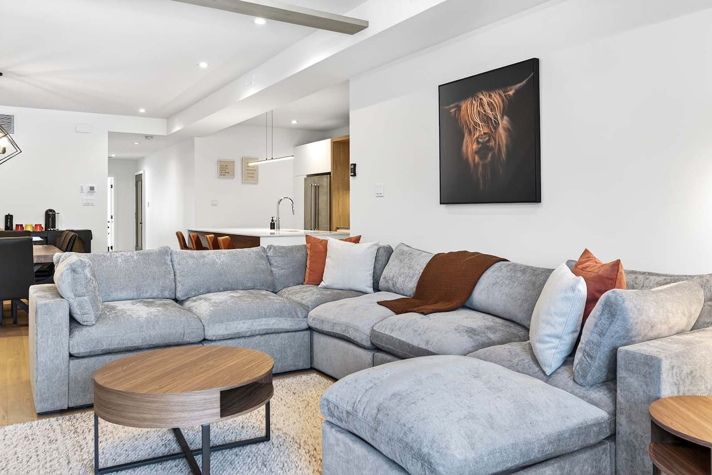 The living area is designed to bring everyone together with the impressive sectional sofa, gas fireplace, and smart TV. The kitchen is equipped with everything you need to prepare delicious meals. Sliding glass doors lead out to the private balcony where you can enjoy the private BBQ and mountain views.