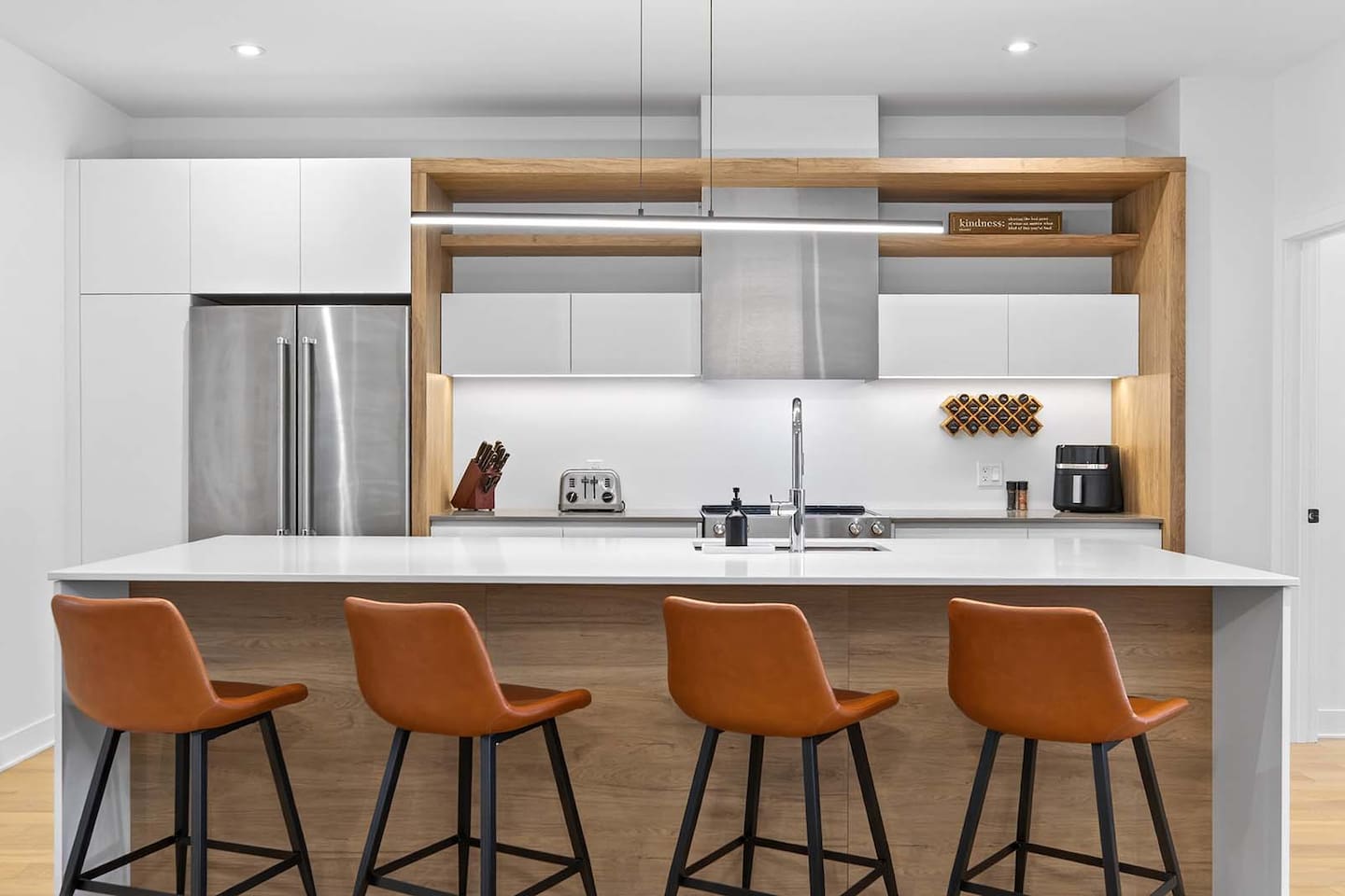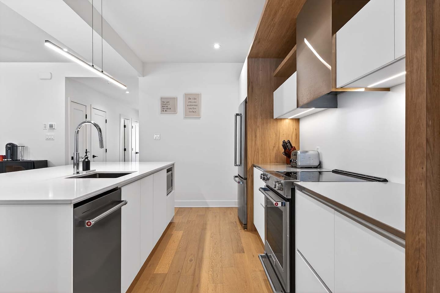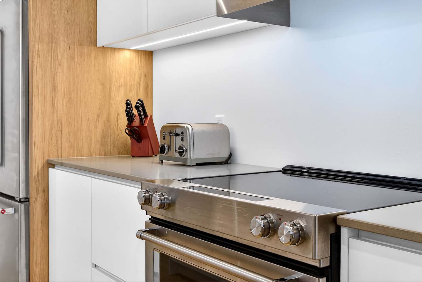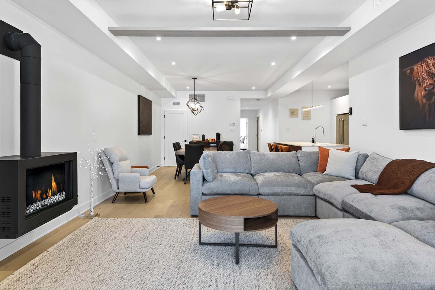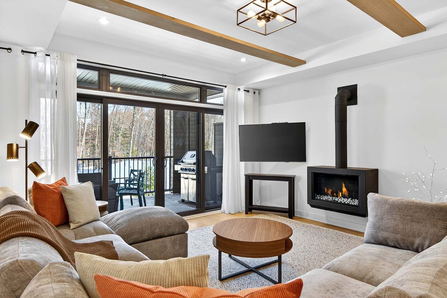 The living area is designed to bring everyone together with the impressive sectional sofa, gas fireplace, and smart TV. The kitchen is equipped with everything you need to prepare delicious meals. Sliding glass doors lead out to the private balcony where you can enjoy the private BBQ and mountain views.