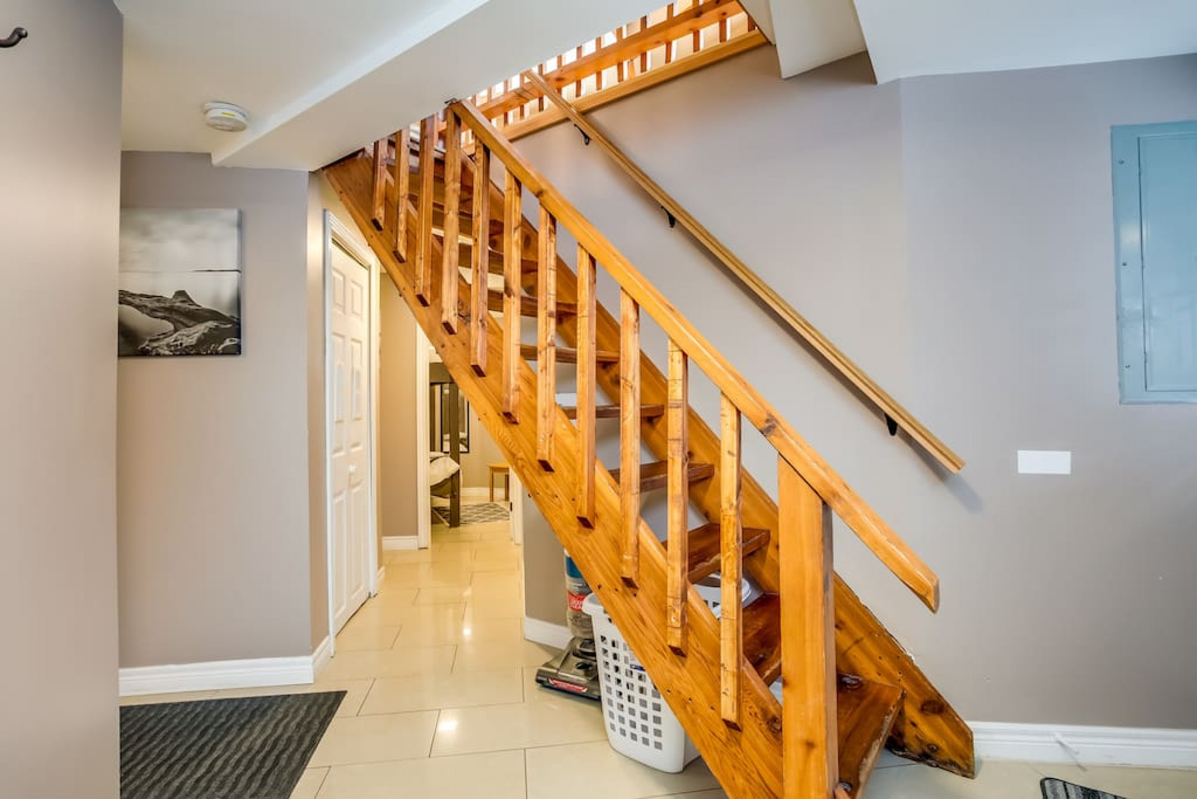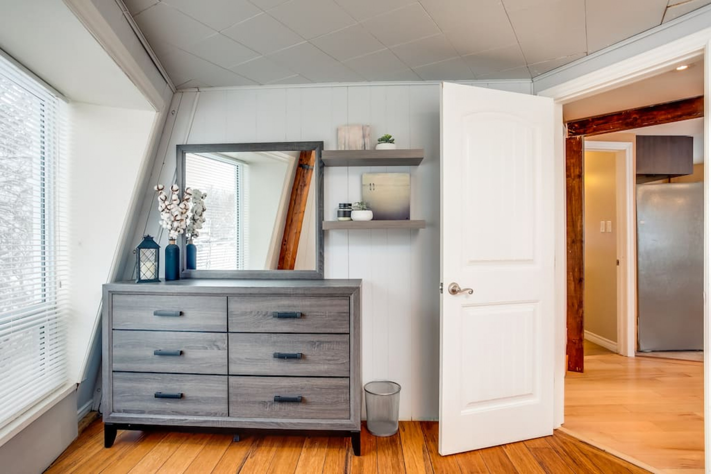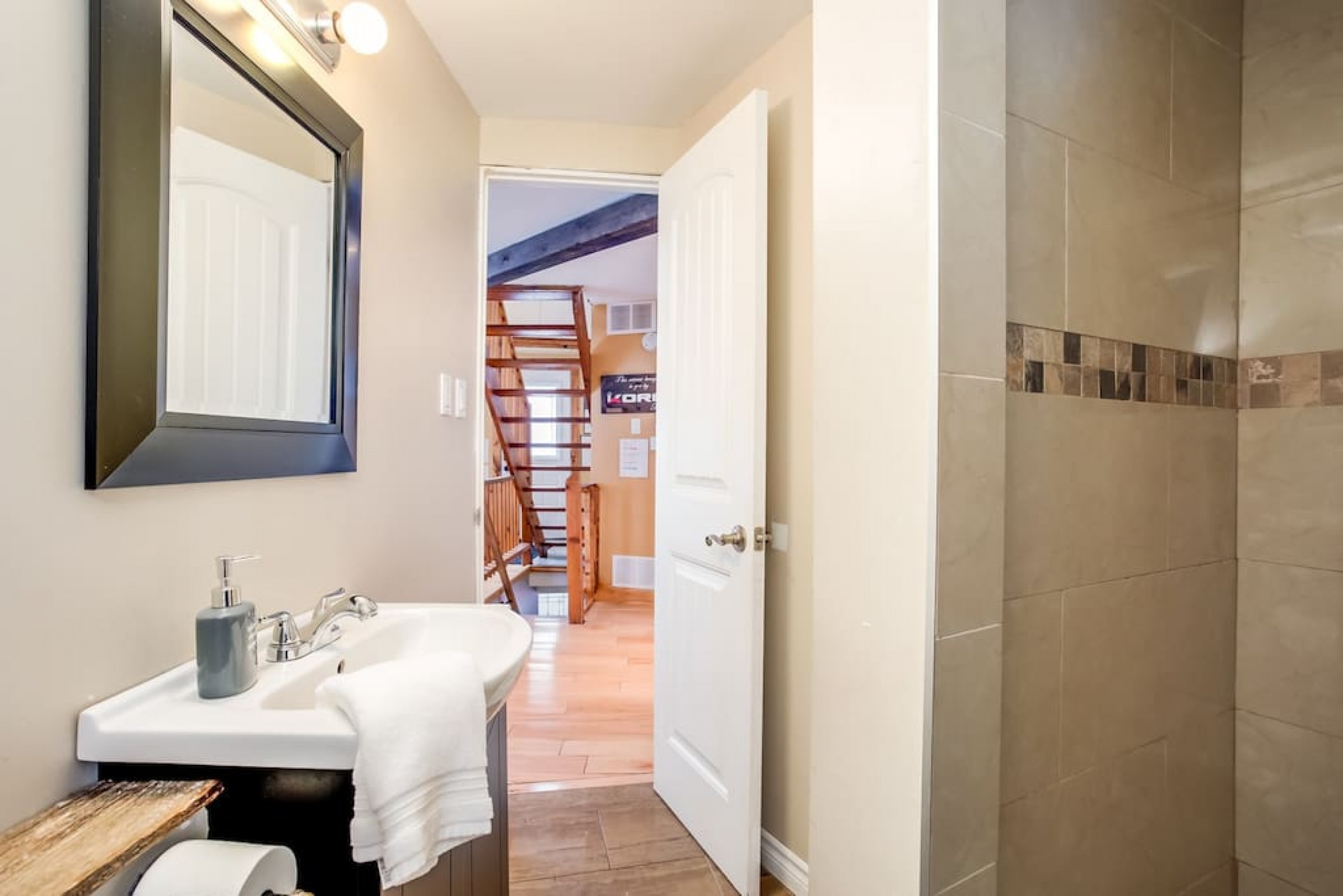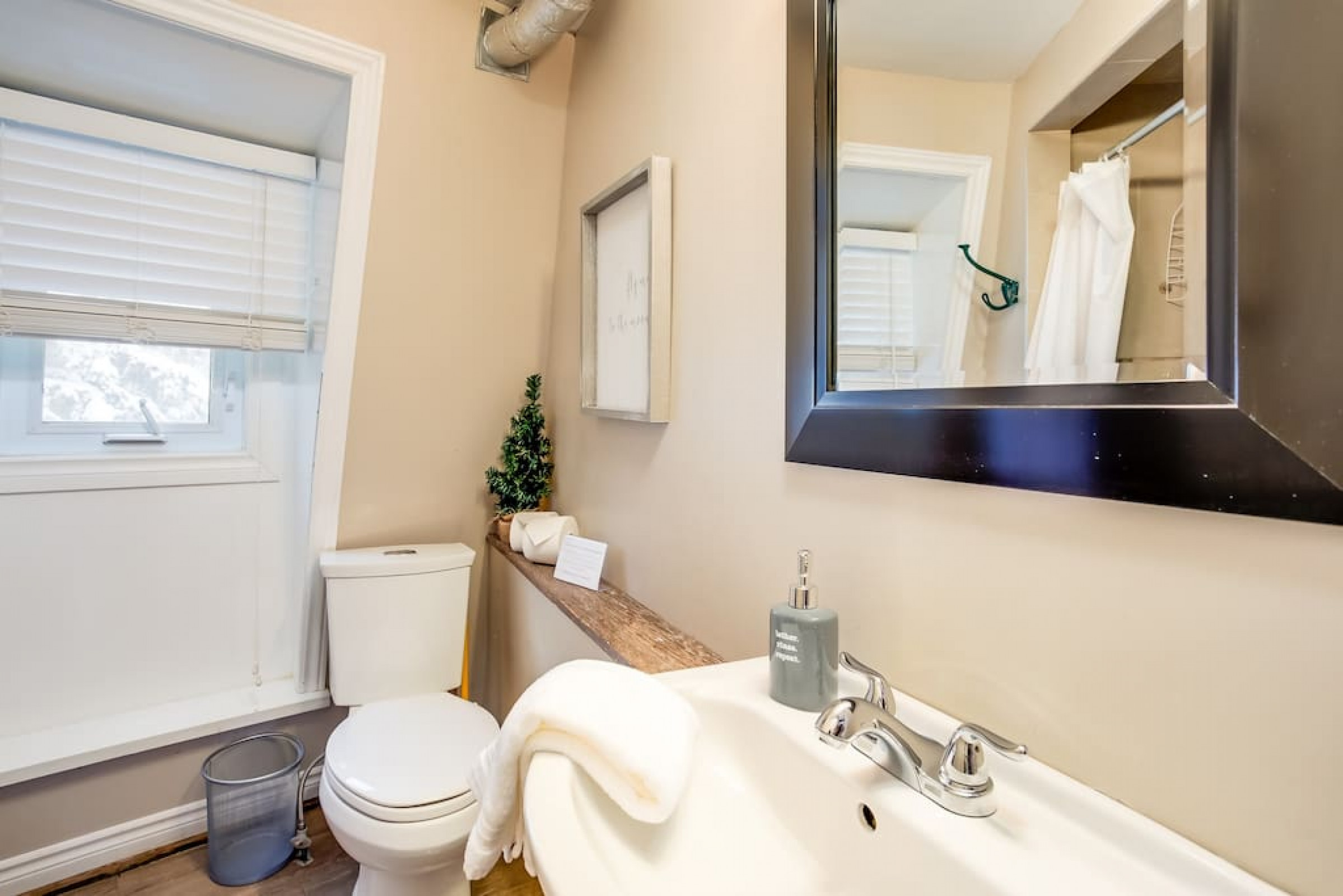 The Beehive is best known for its unique curb appeal, but wait until you see the inside. It is lovingly styled with a Boho-Scandi inspired vibe. The vaulted circular ceilings are stunning and let in tons of natural light. All six bedrooms have rounded walls- no two are alike. There are two full washrooms each with an upright shower. The living room is located in the upper loft and features a flat screen tv, fireplace insert and skylights that let in tons of natural light! The open concept kitchen & dining area is a great place to host an intimate dinner party or brunch. The breakfast bar makes entertaining easy and social. There is a wrap around deck with a small dining set, hot tub and BBQ . The firepit on the front lawn is yours to enjoy (BYO firewood in fall/winter) and there is plenty of outdoor space for lawn games in the summer!