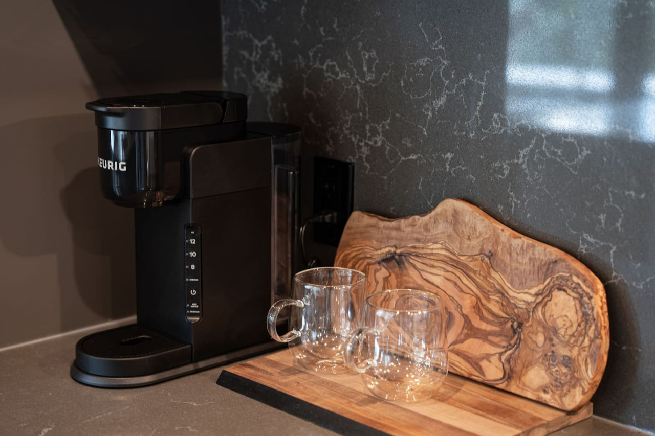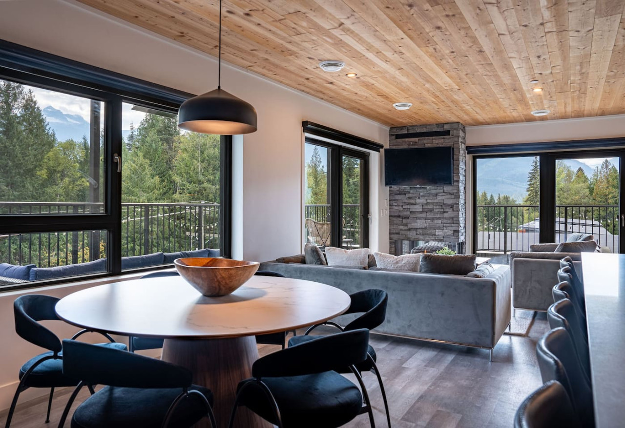 The kitchen is equipped with every appliance you would need for a night in cooking when you’re not at one of Revelstoke’s delicious local restaurants. A Keurig coffee machine is available for your morning brews. The connected dining area seats 6 along with 6 spaces along the grand kitchen island.