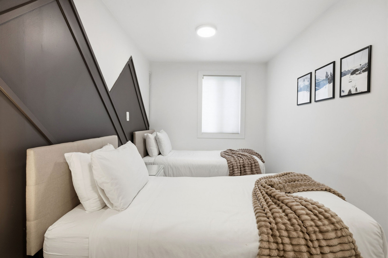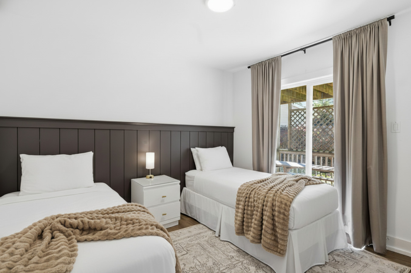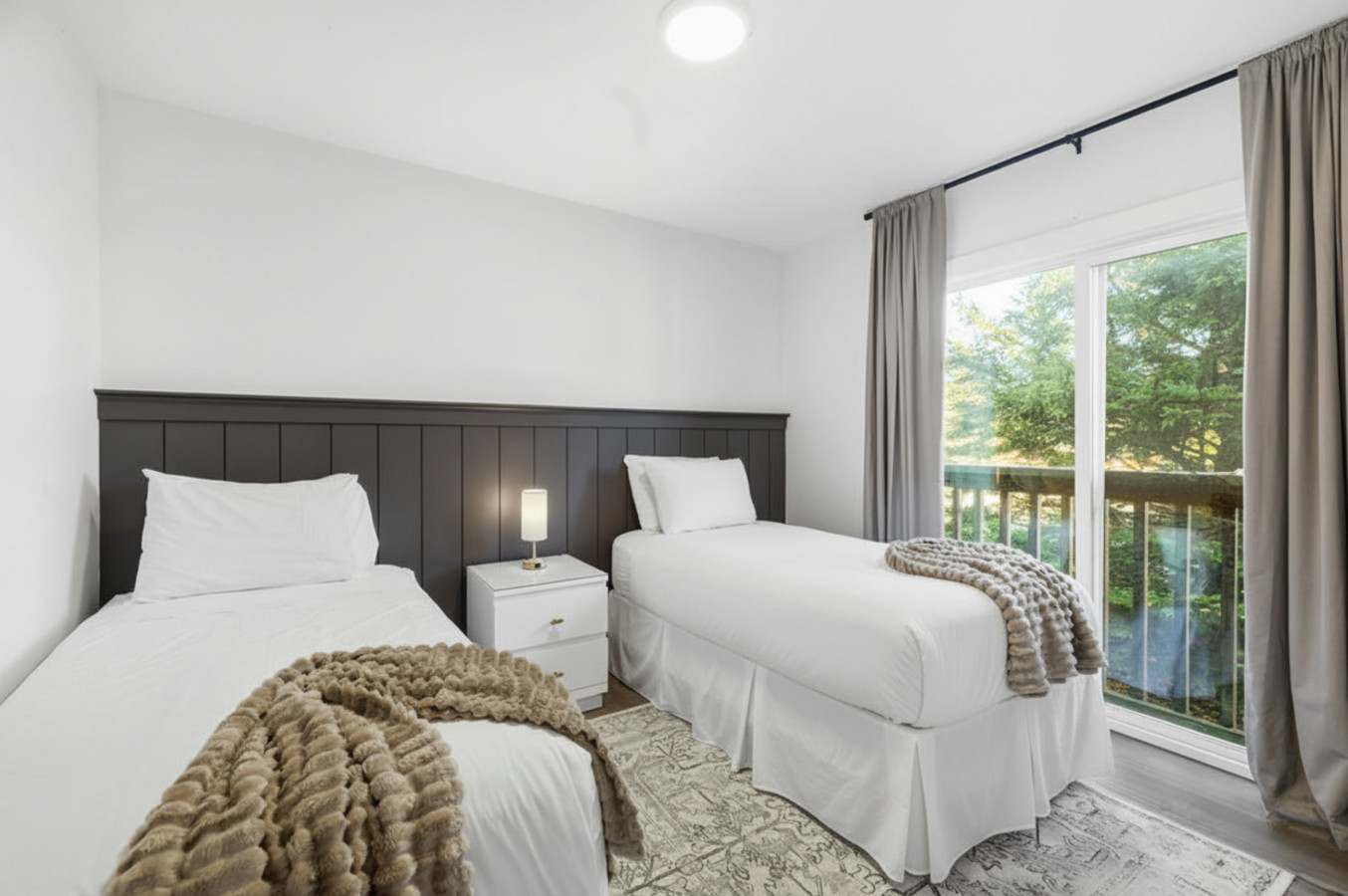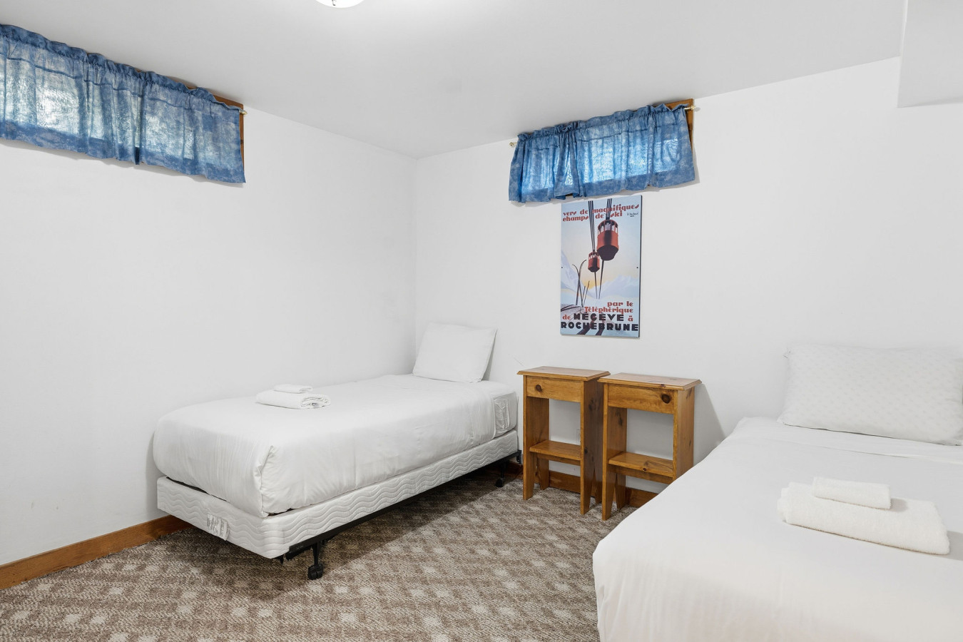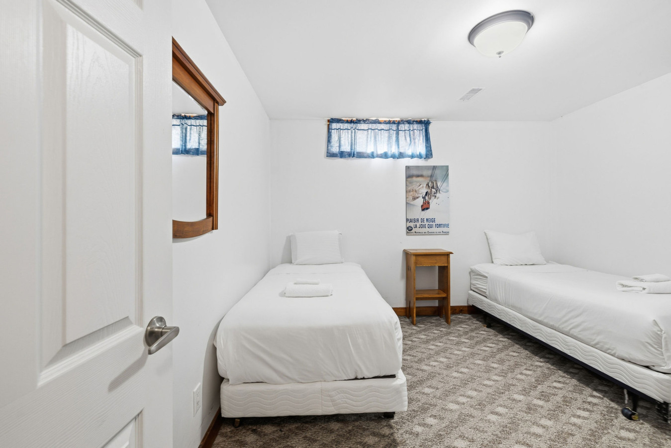 On the Lower Level, you will find 2 bedrooms, a half bathroom, and an entertainment area with comfortable sofa seating, smart TV, ping pong table, and laundry machines for your convenience.