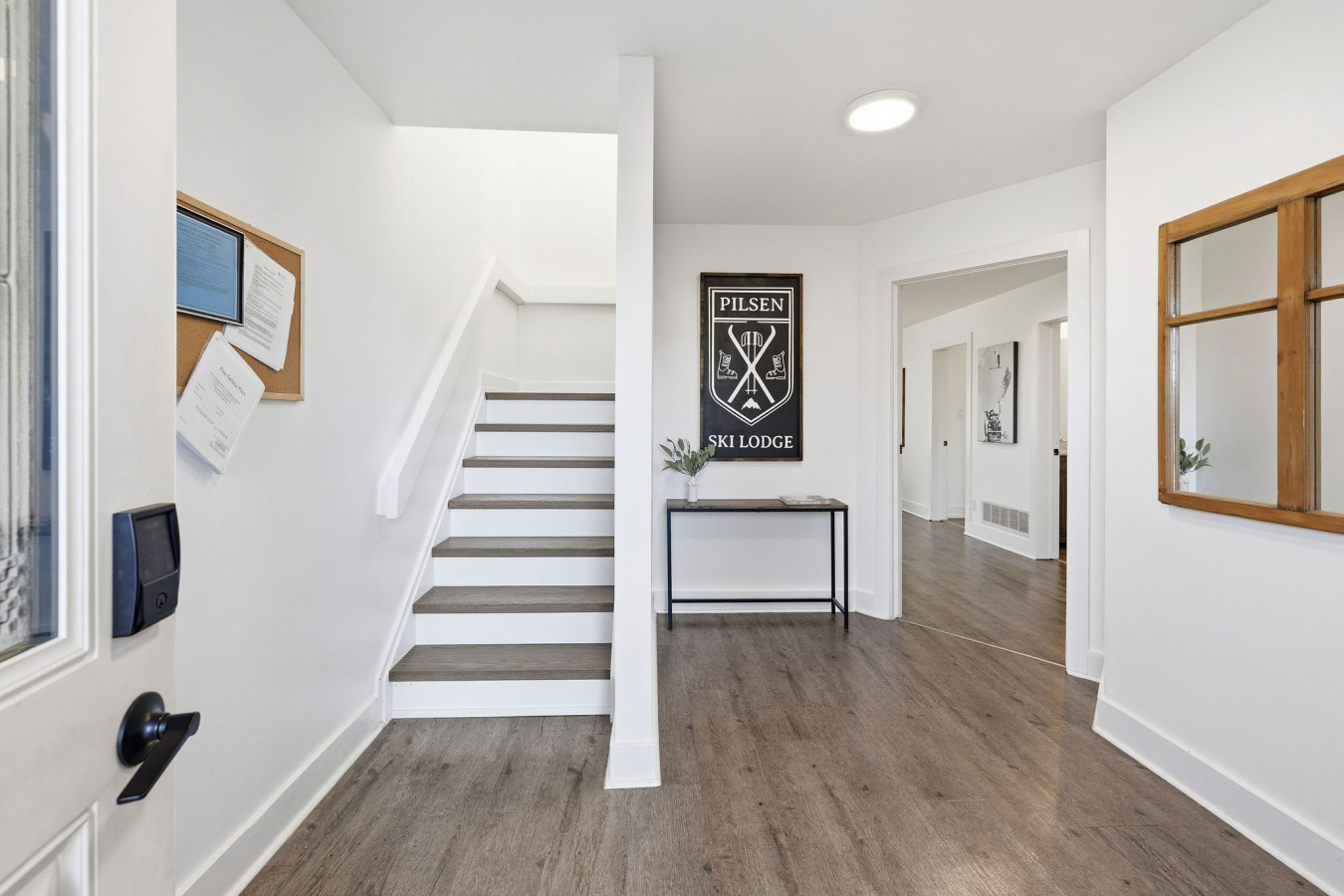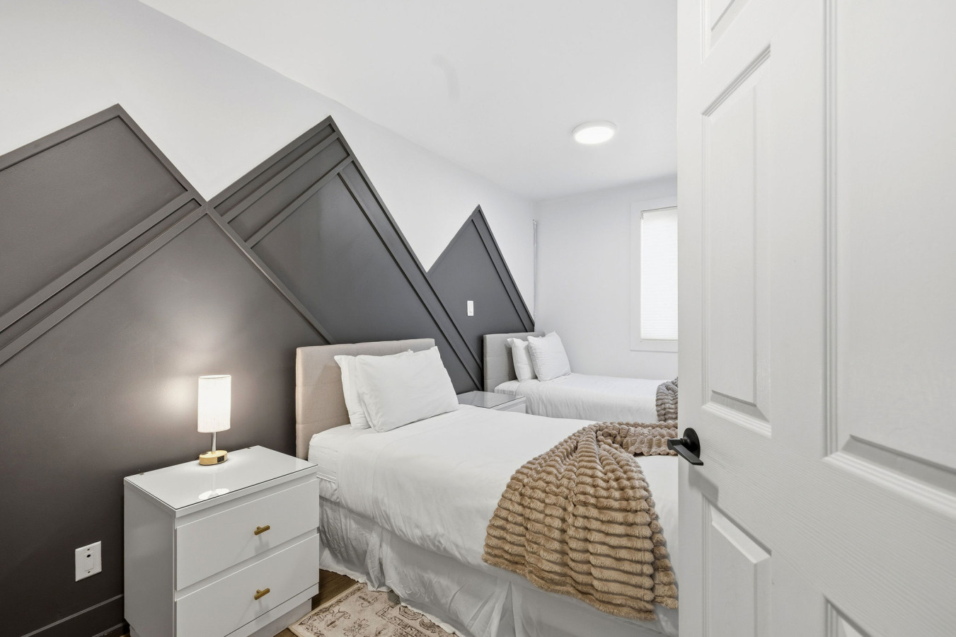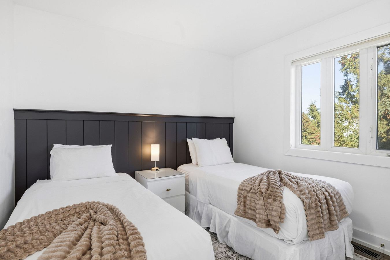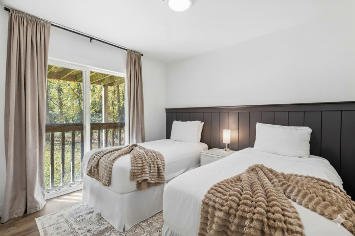 On the Lower Level, you will find 2 bedrooms, a half bathroom, and an entertainment area with comfortable sofa seating, smart TV, ping pong table, and laundry machines for your convenience.