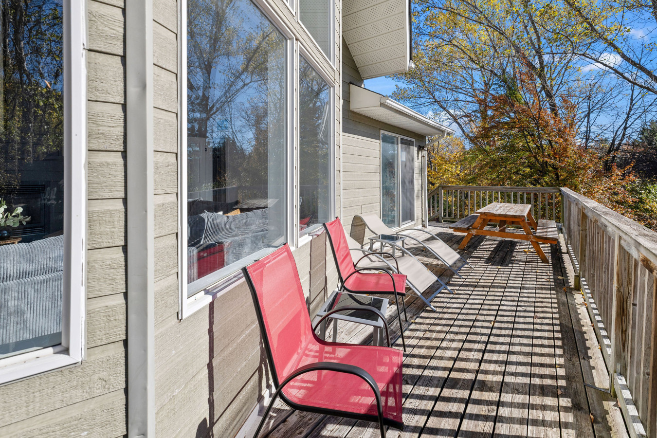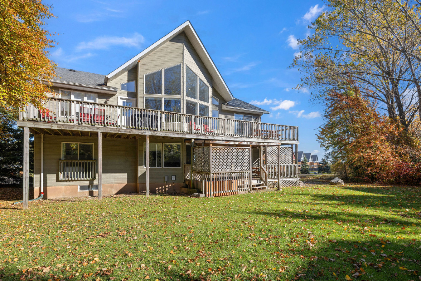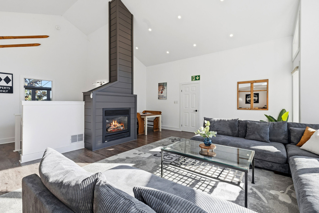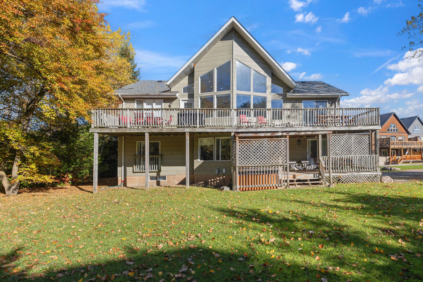 The Main Level of the chalet features 5 bedrooms and 2 washrooms, as well as a large, open living room with cable & smart TV. There is easy access to the main floor deck on which to enjoy the 6-person outdoor hot tub year-round.