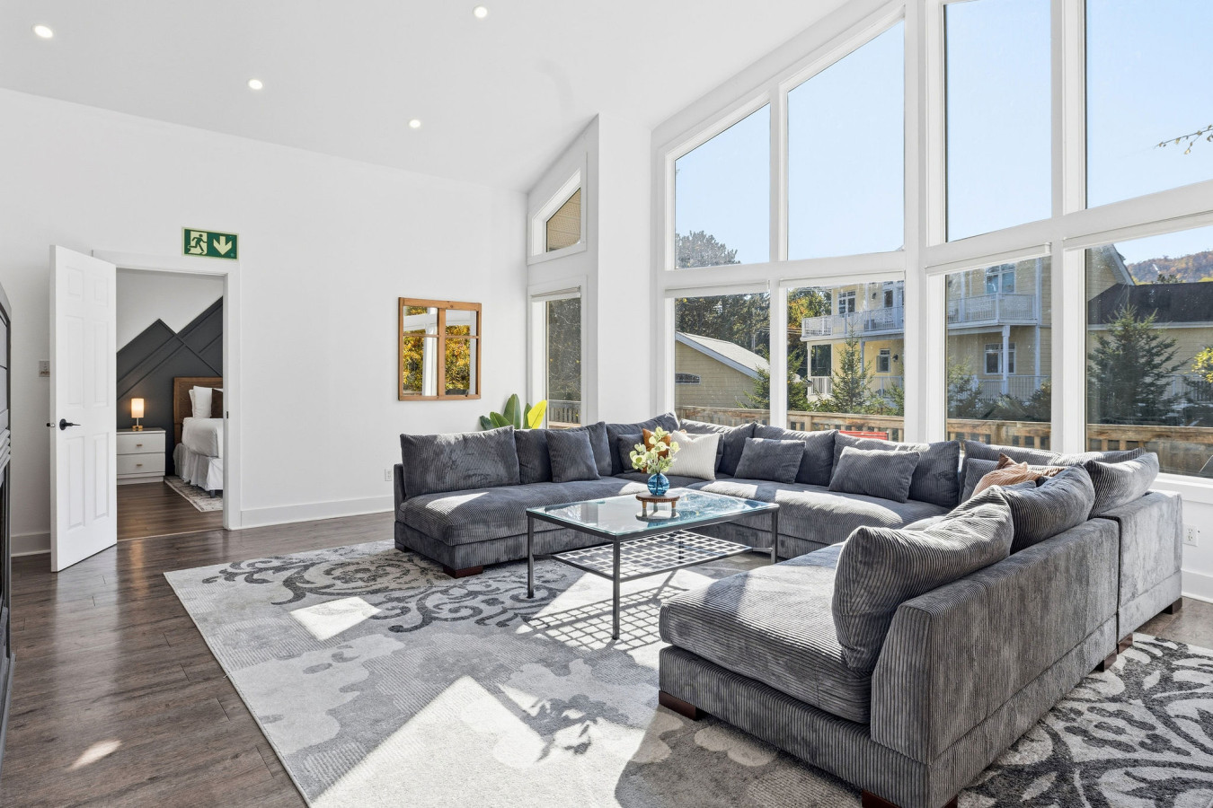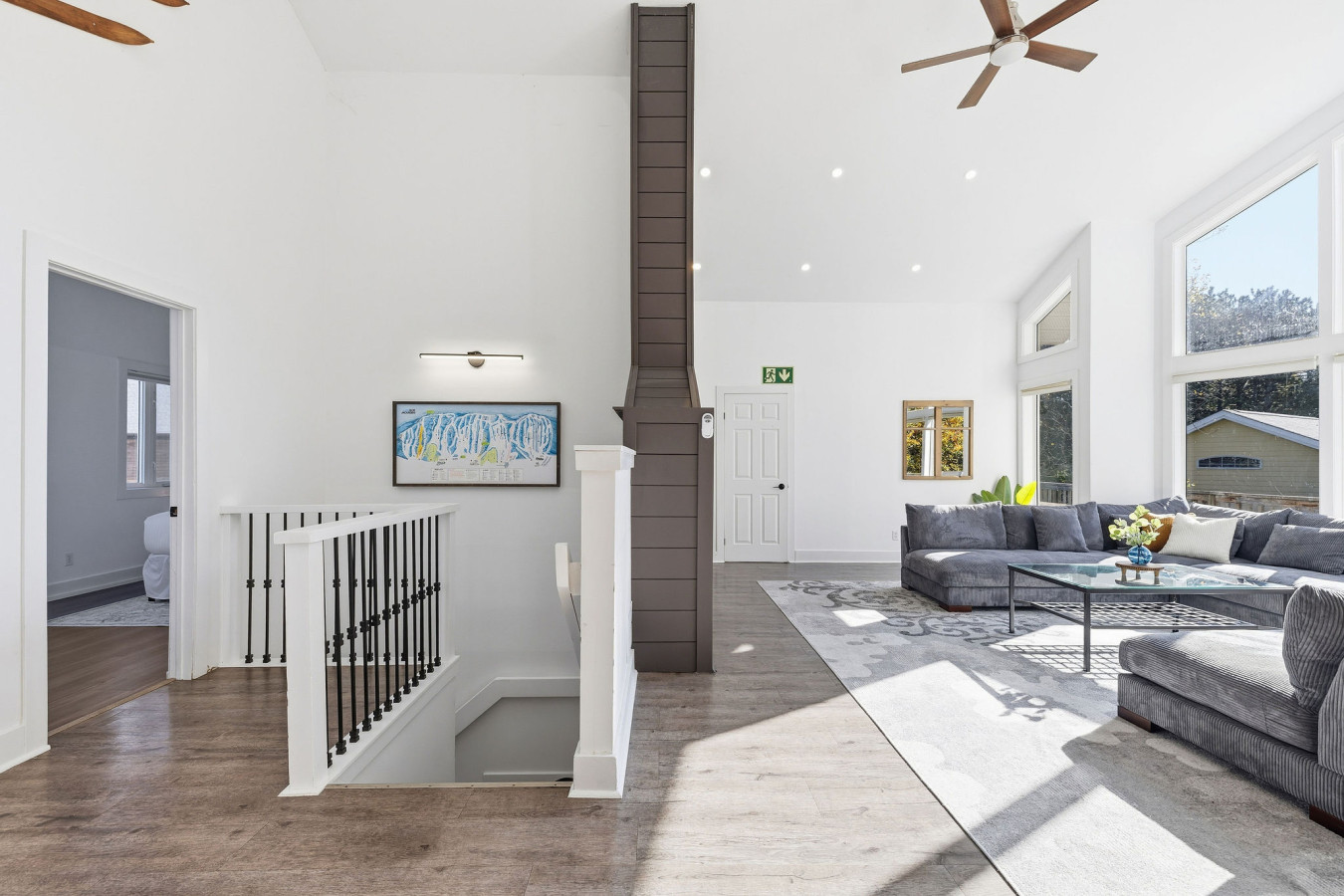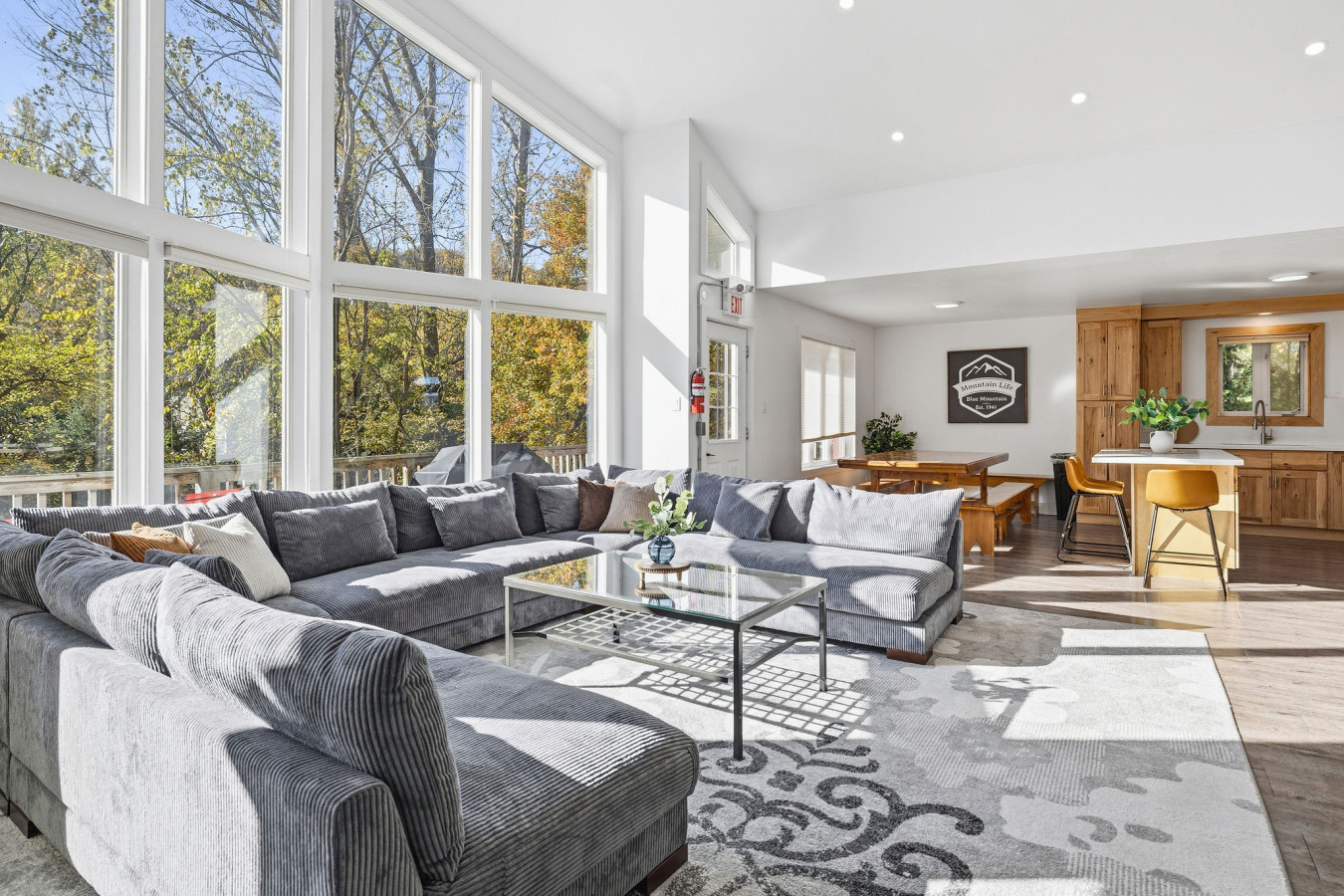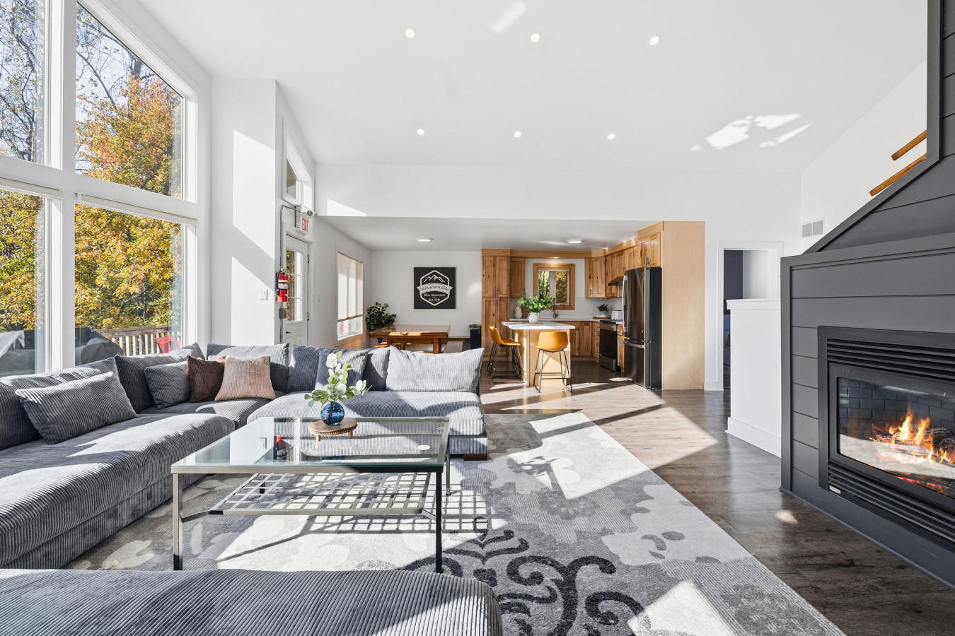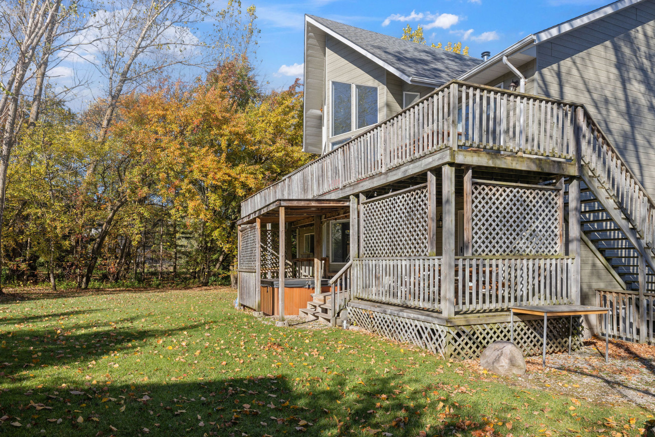 The Main Level of the chalet features 5 bedrooms and 2 washrooms, as well as a large, open living room with cable & smart TV. There is easy access to the main floor deck on which to enjoy the 6-person outdoor hot tub year-round.