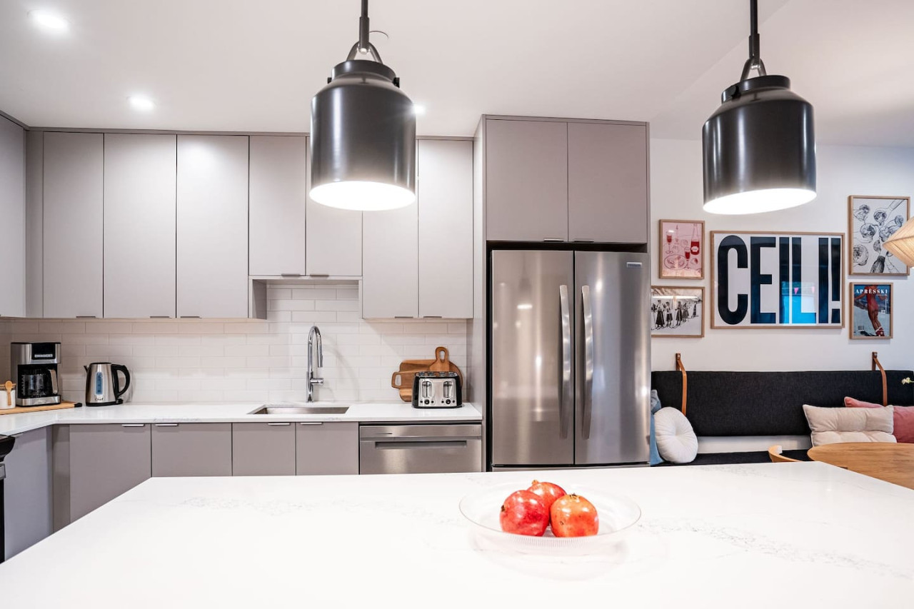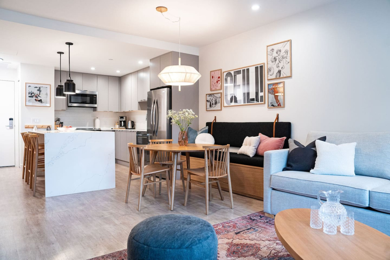 Parking: Free parking includes one covered spot in the underground garage. Additional cars must park in public lots nearby. Please be aware of the following parking information before booking.
