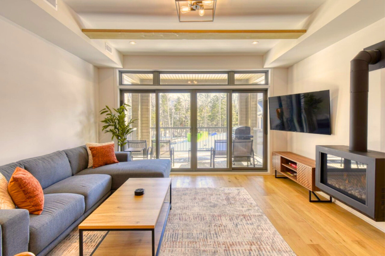 Bienvenue dans notre appartement moderne de 2 chambres, idéalement situé à côté du parcours de golf Le Géant et à quelques minutes des pistes de ski de Mont-Tremblant. Idéal pour les familles ou les groupes (pouvant accueillir jusqu'à 7 personnes), il se trouve à proximité de restaurants, de sentiers et d'activités tout au long de l'année.