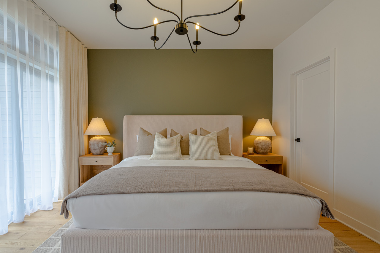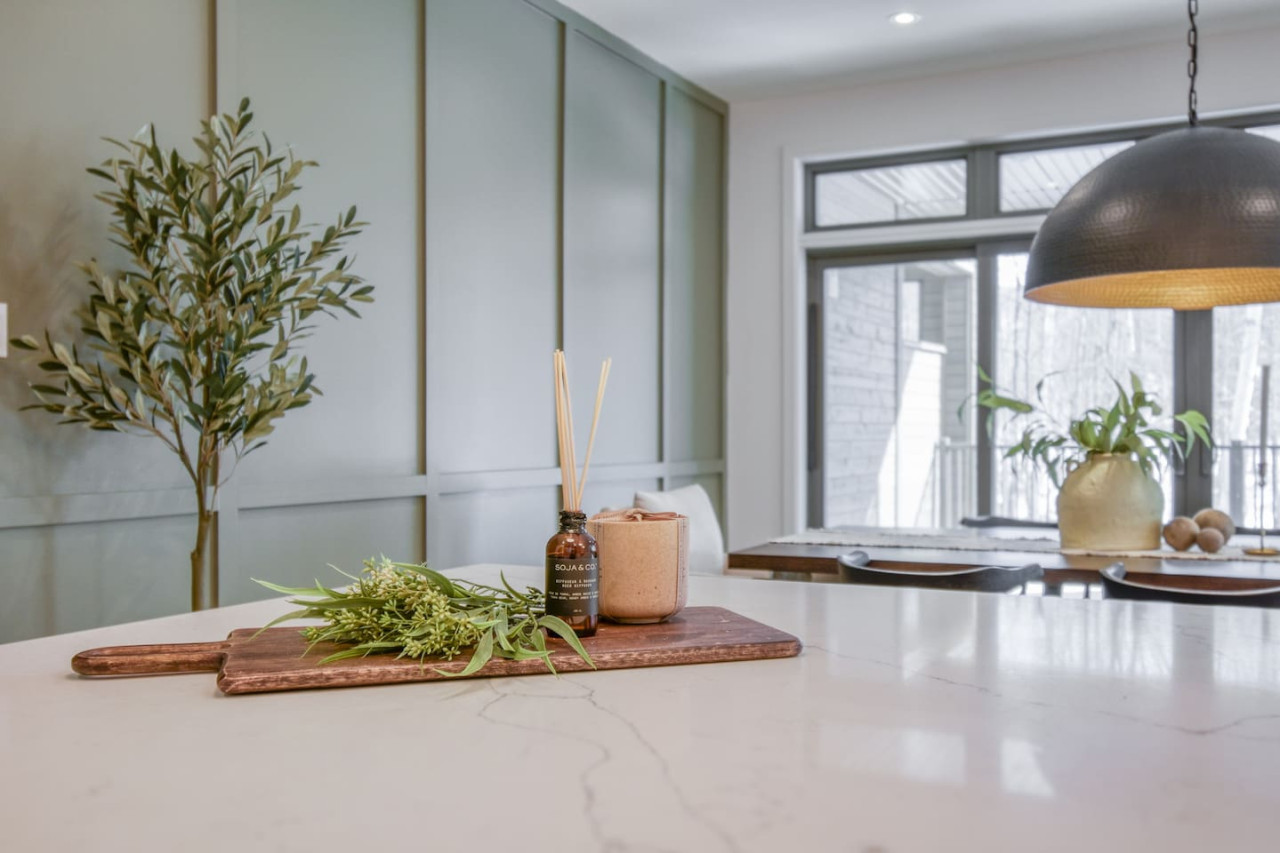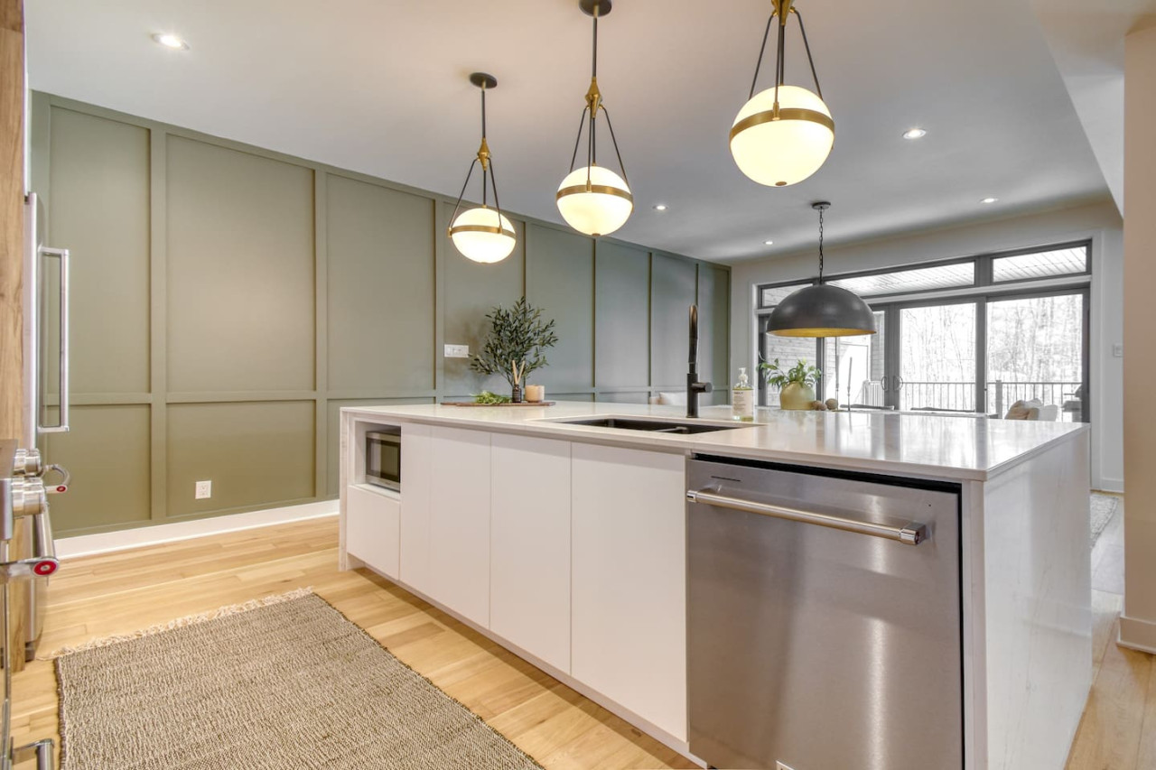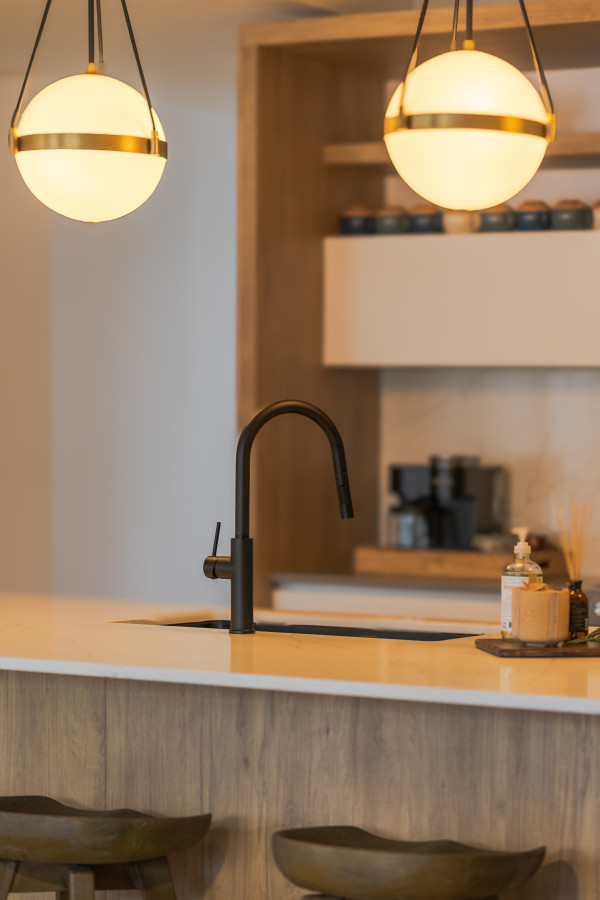 The living room is tastefully decorated and is set up with comfortable seating and a gas fireplace, perfect for unwinding after a day of adventure in the village. The living room couch is conveniently a double sofa bed for extra sleeping space. Equipped with state-of-the-art appliances, and cookware, the kitchen is ready for you to prepare delicious homemade meals.