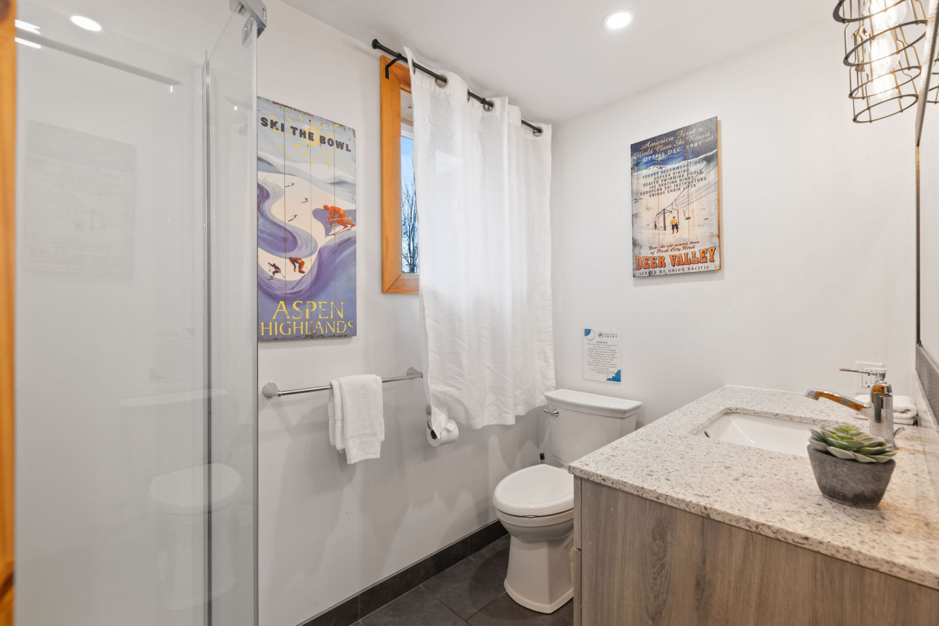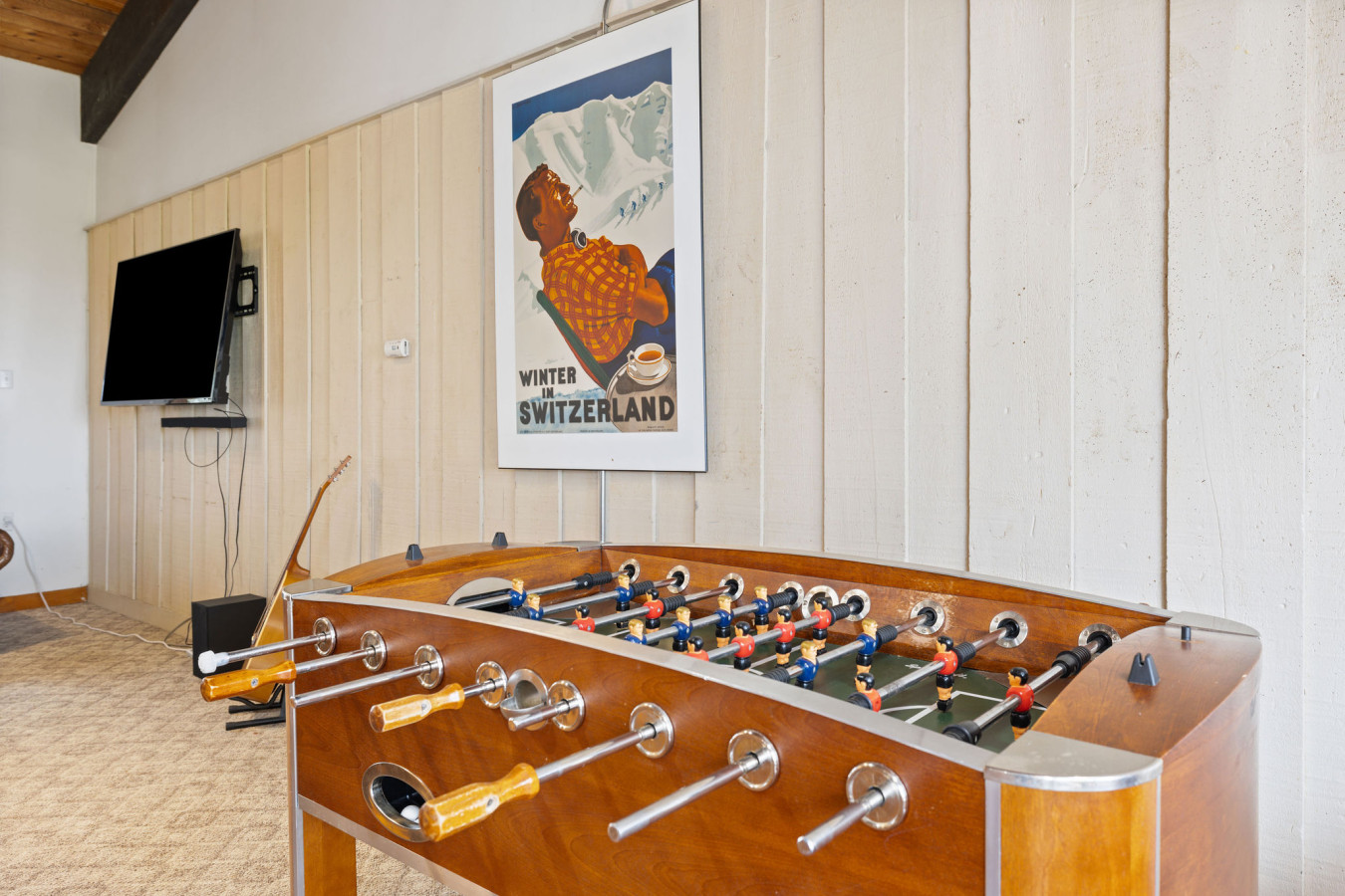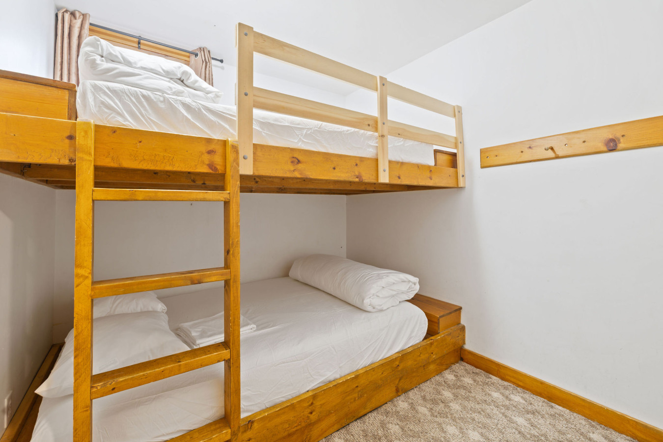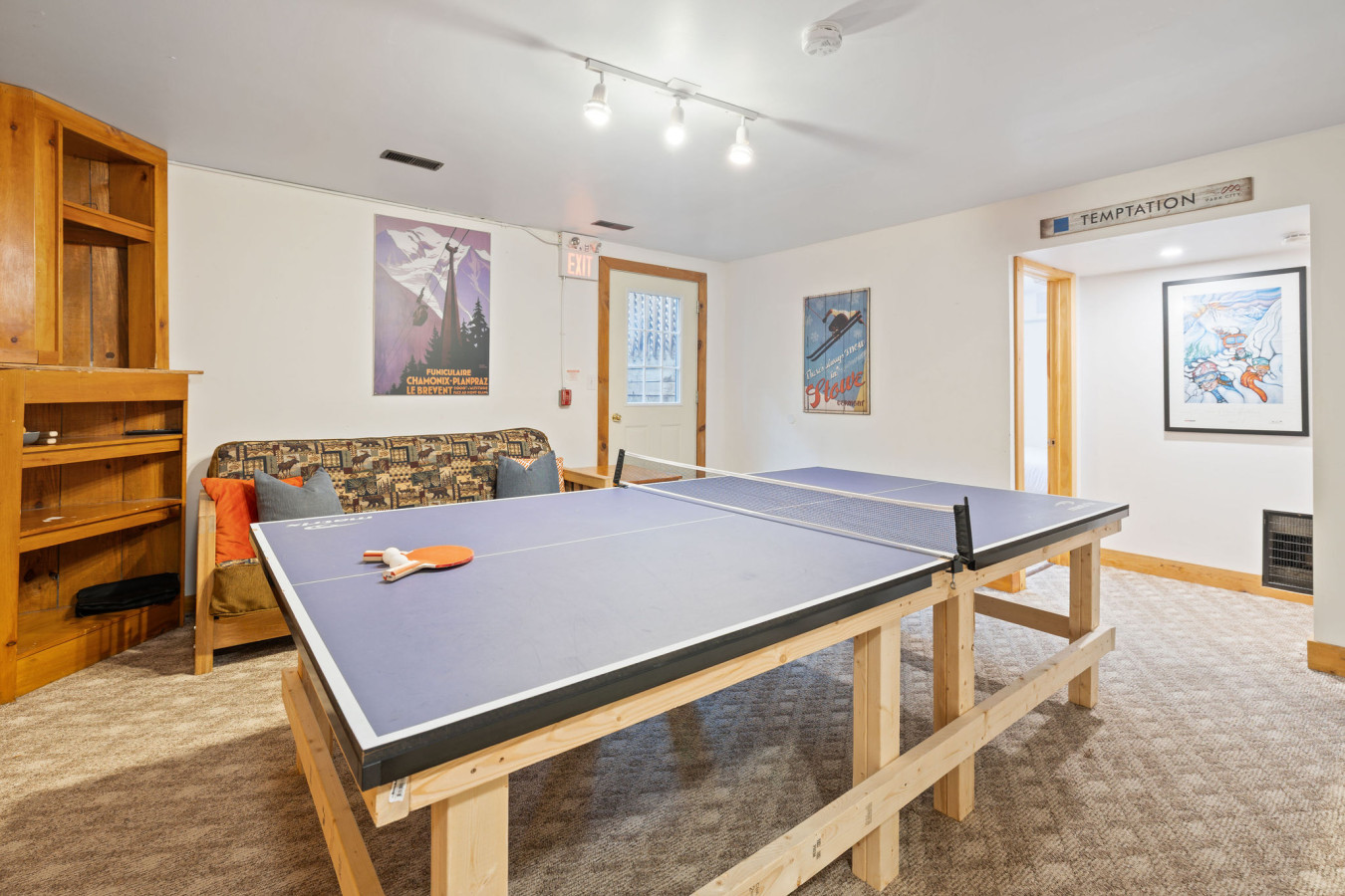 The finished basement has a lounging space with a TV and 4 bedrooms on this level, 2 bedrooms with a double size bunk bed and 2 with a queen bed.