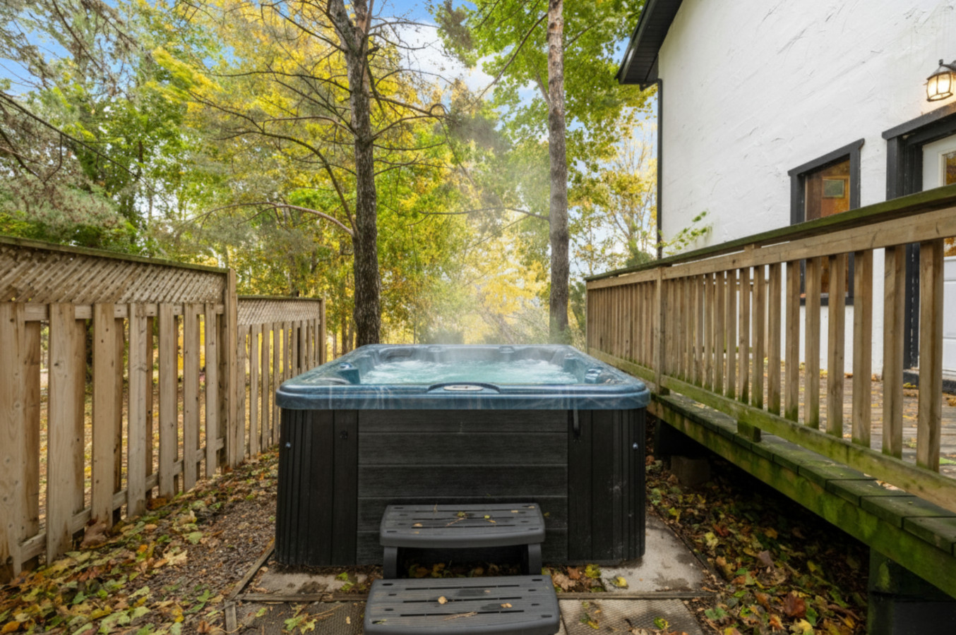 This unit has a private hot tub for you to enjoy during your stay! The hot tub is chemically treated and cleaned by our team between each stay.