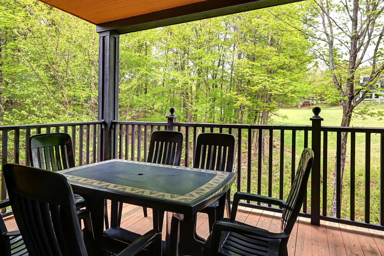 The kitchen is fully equipped with cookware, bakeware, cutlery, utensils, and a drip coffee maker - all you need is your food and spices! The kitchen and dining area seats 8, so everyone can get together on those nights when you're not dining at one of Tremblant's local restaurants. A BBQ and outdoor seating is available for Summer cookouts on the balcony as well!
