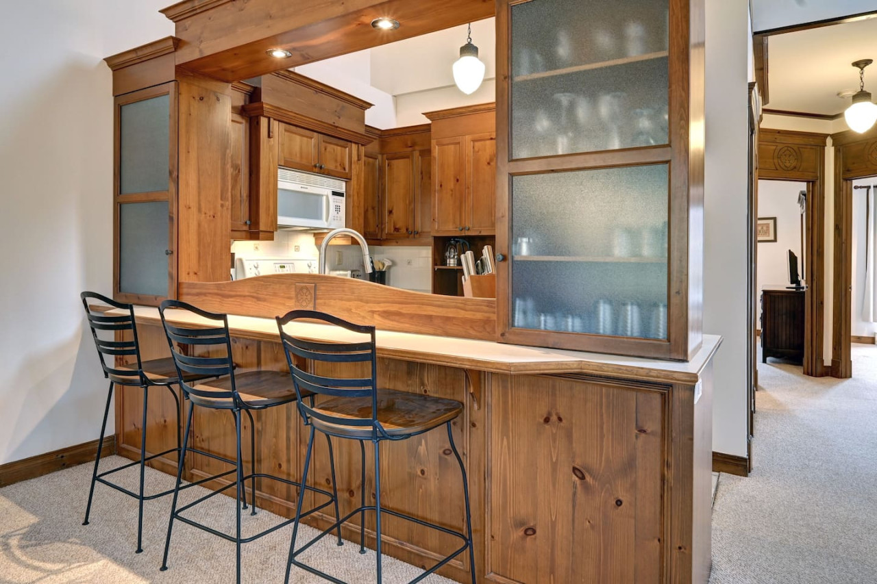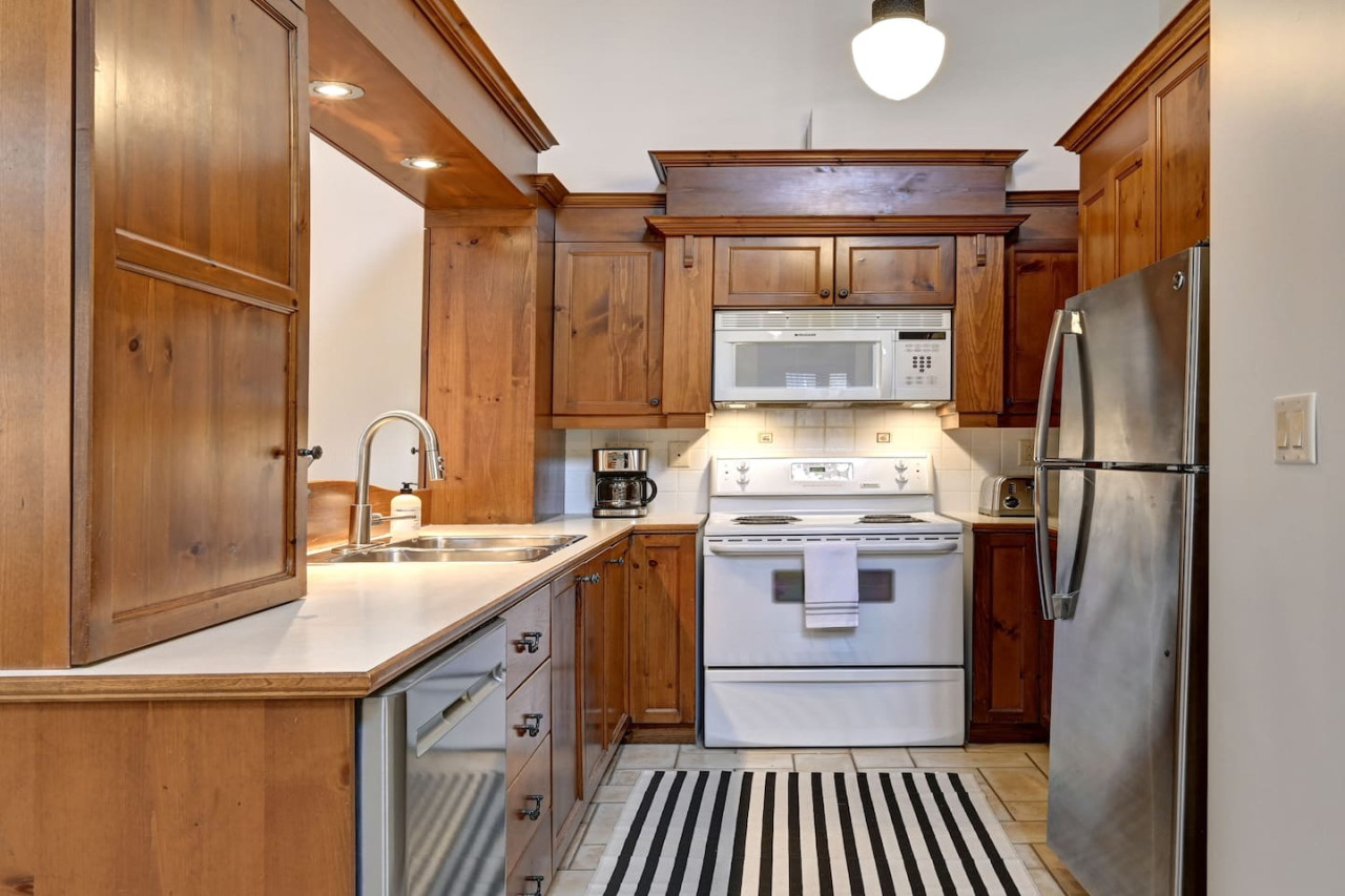 La cuisine est entièrement équipée avec des ustensiles de cuisine, des ustensiles de cuisson, des couverts, des ustensiles et une cafetière goutte à goutte - tout ce dont vous avez besoin, c'est de votre nourriture et de vos épices ! La cuisine et la salle à manger peuvent accueillir 8 personnes, ce qui permet à tout le monde de se réunir les soirs où vous ne mangez pas dans l'un des restaurants locaux de Tremblant. Un barbecue et des sièges extérieurs sont également disponibles pour les soirées d'été sur le balcon!