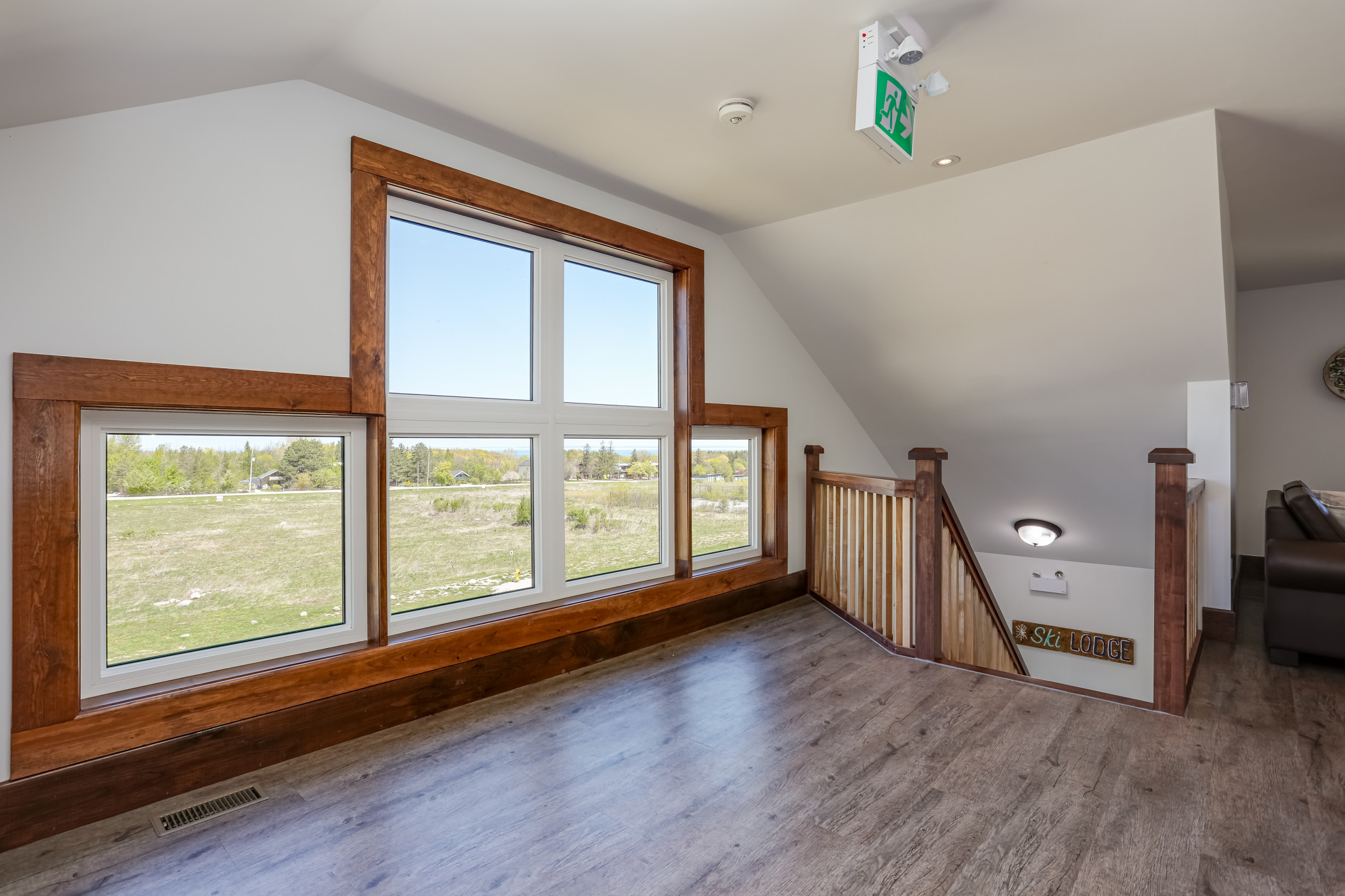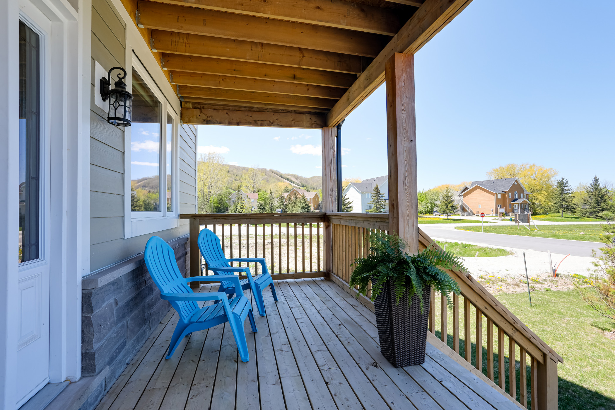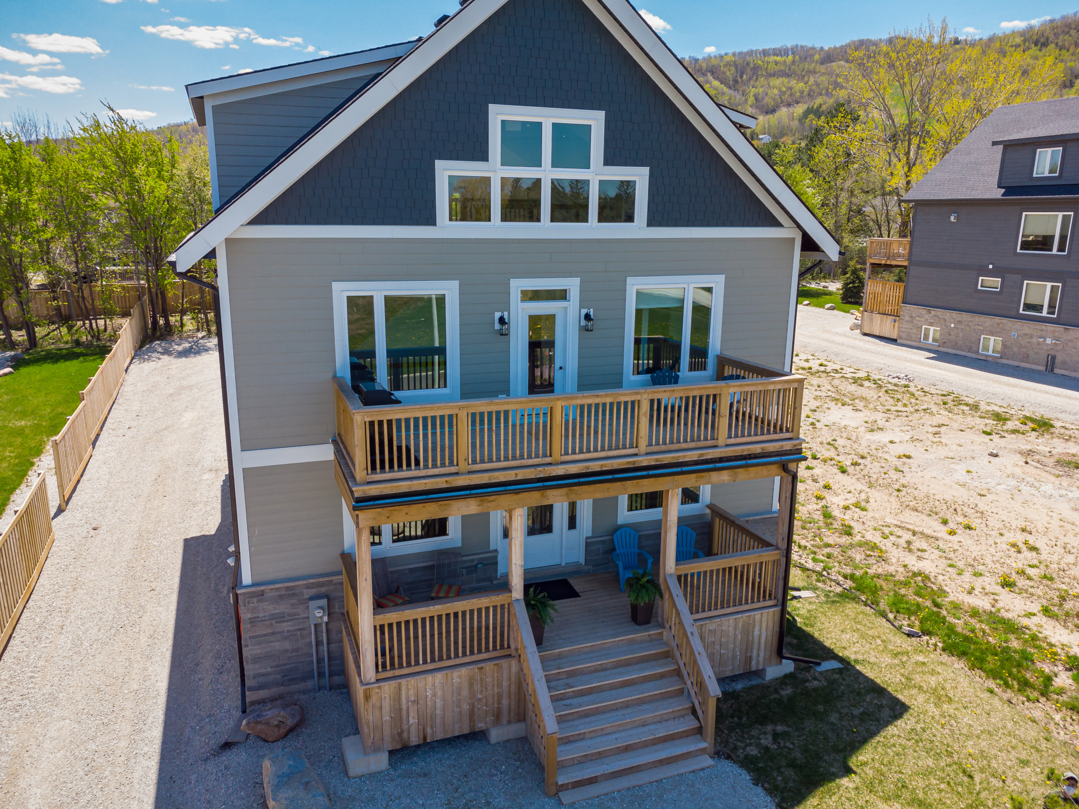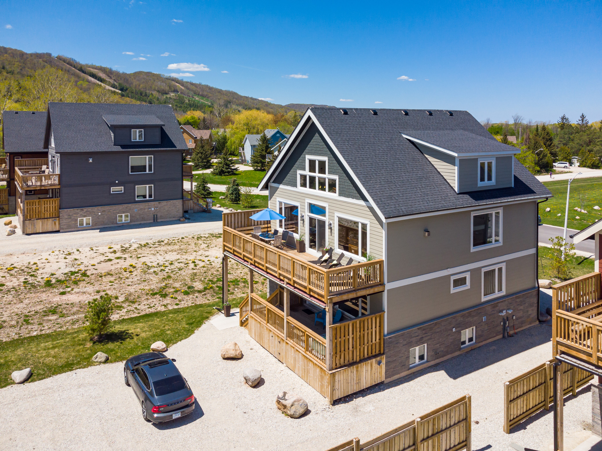Modern, clean, fresh and bright! Great views are accompanied by the ideal combination of privacy and quiet. Walk outside onto either of the two balconies to see the ski hill’s lights at night or enjoy the view inside the built-in hot tub. This chalet is only a short 12 min walk or 3 min drive to The Blue Mountain Village and ski slopes. Take advantage of this spacious chalet including an upstairs loft perfect for a yoga class or simply a hangout spot with comfortable couches, a TV, and a ping pong table! This property has ample indoor and outdoor space to provide your group catering services. Enjoy this fully loaded chalet with all modern conveniences inside an atmosphere that you won’t want to leave.