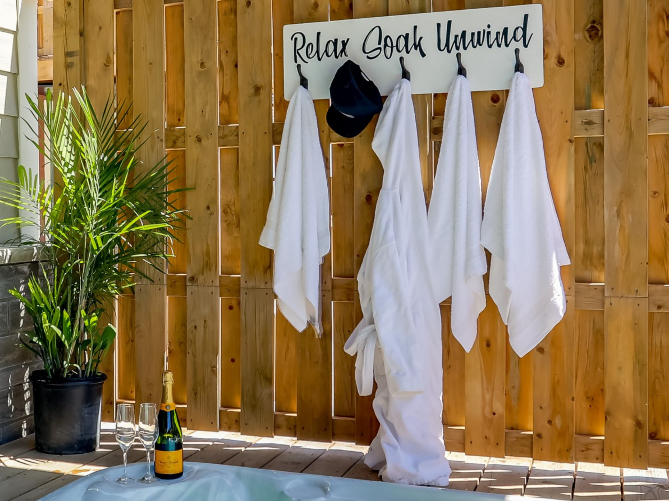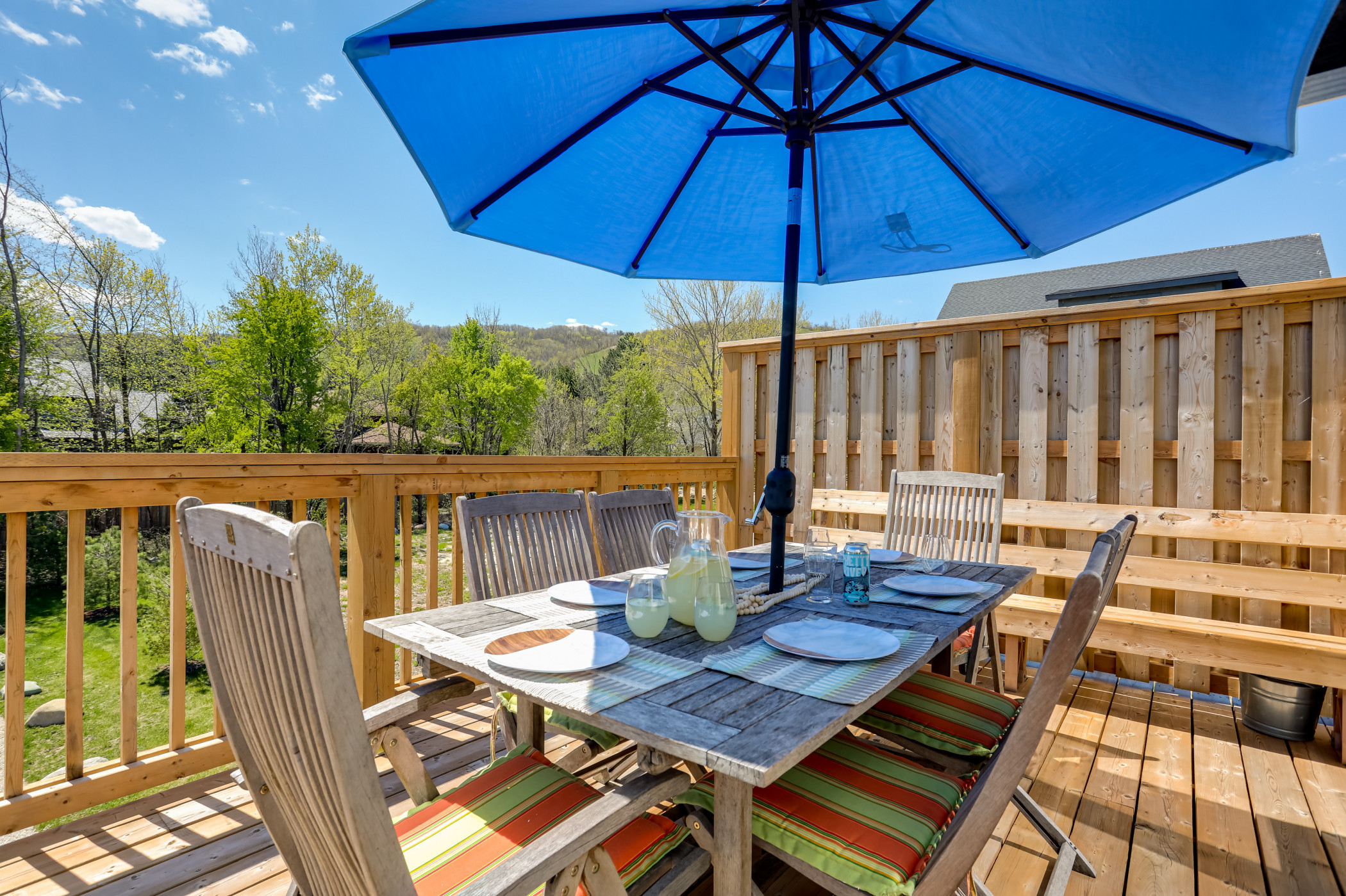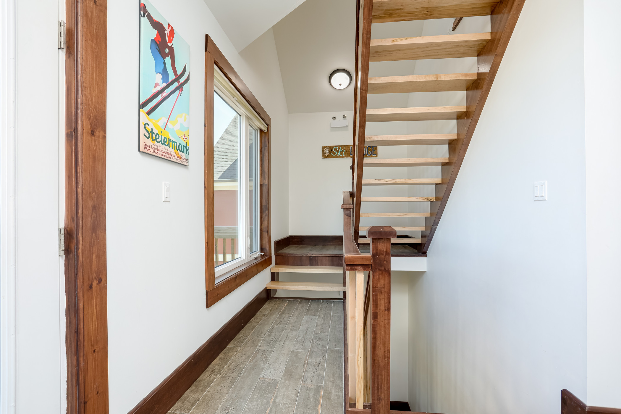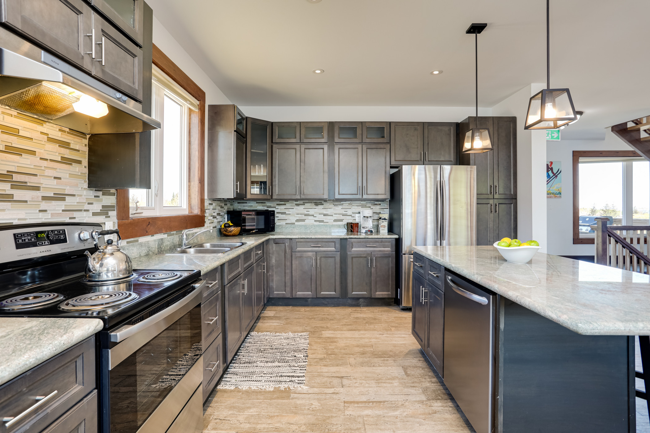 Modern, clean, fresh and bright! Great views are accompanied by the ideal combination of privacy and quiet. Walk outside onto either of the two balconies to see the ski hill’s lights at night or enjoy the view inside the built-in hot tub. This chalet is only a short 12 min walk or 3 min drive to The Blue Mountain Village and ski slopes. Take advantage of this spacious chalet including an upstairs loft perfect for a yoga class or simply a hangout spot with comfortable couches, a TV, and a ping pong table! This property has ample indoor and outdoor space to provide your group catering services. Enjoy this fully loaded chalet with all modern conveniences inside an atmosphere that you won’t want to leave.