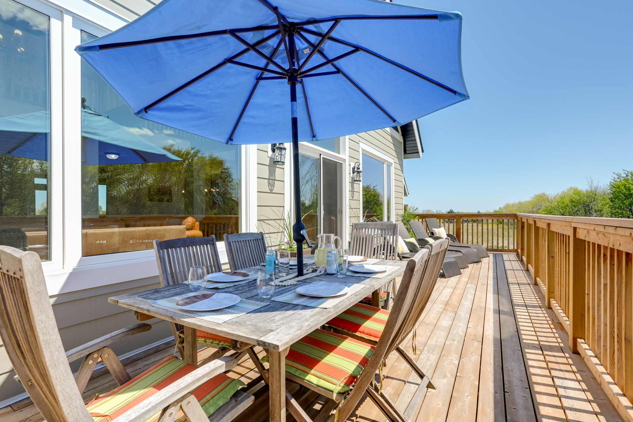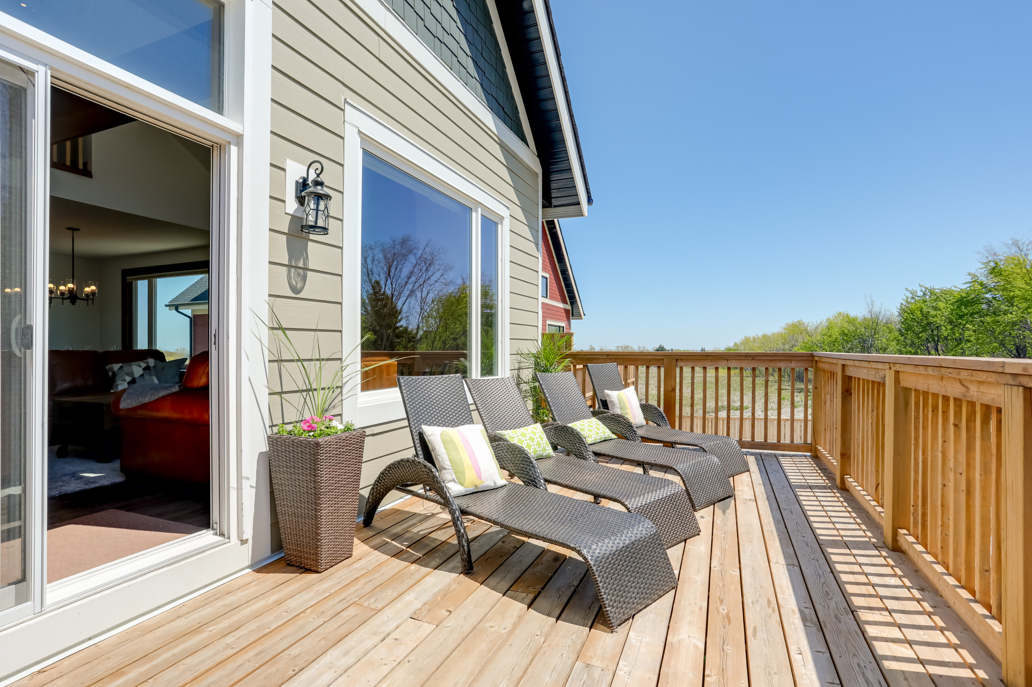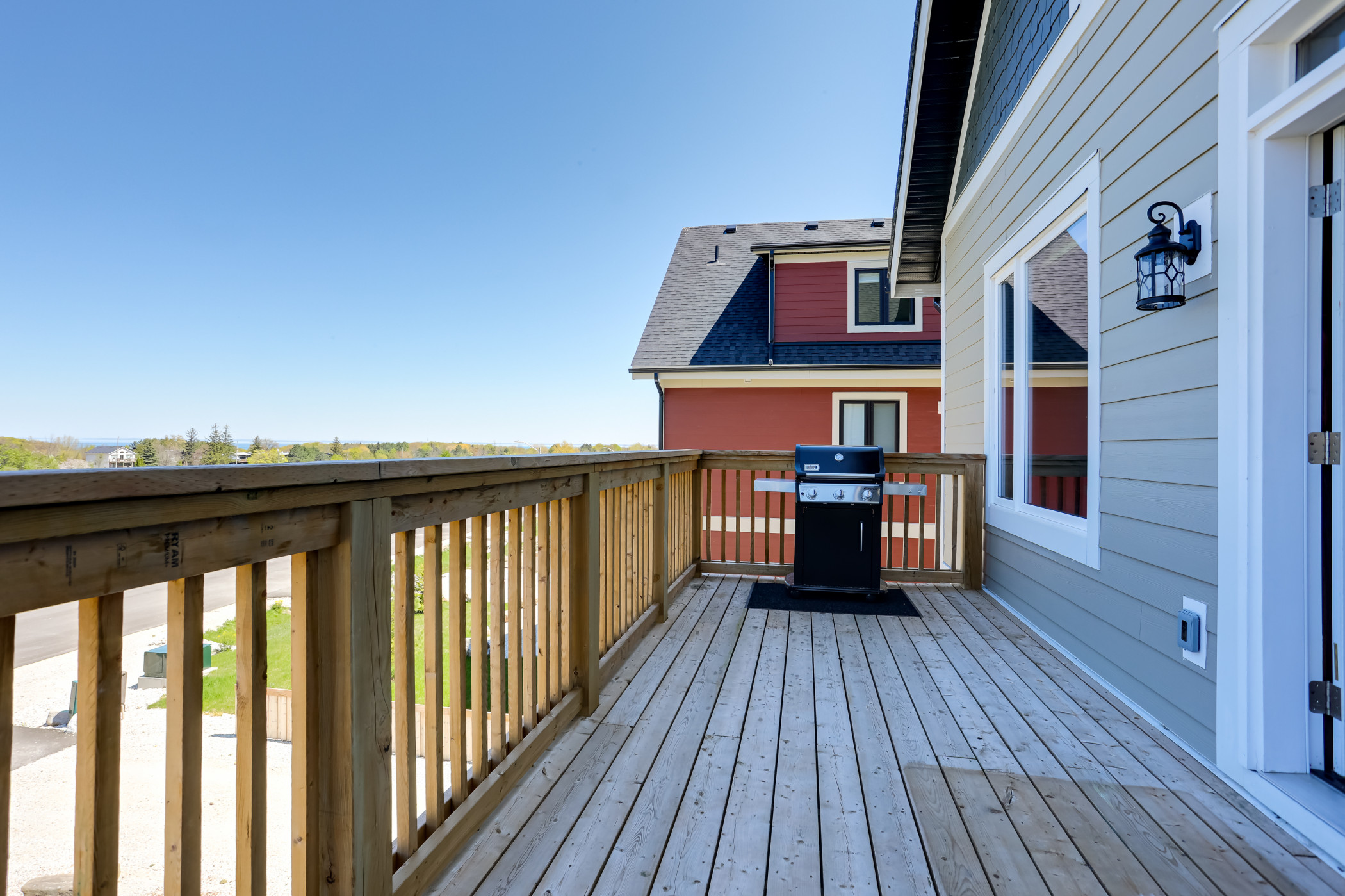 Enjoy eating outside on our teak dining table or enjoying the beautiful weather on our muskoka chairs. BBQ on walk out deck at kitchen level for easy cooking during the summer.