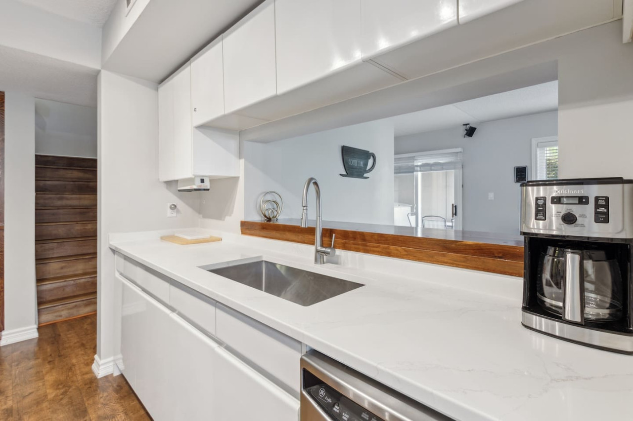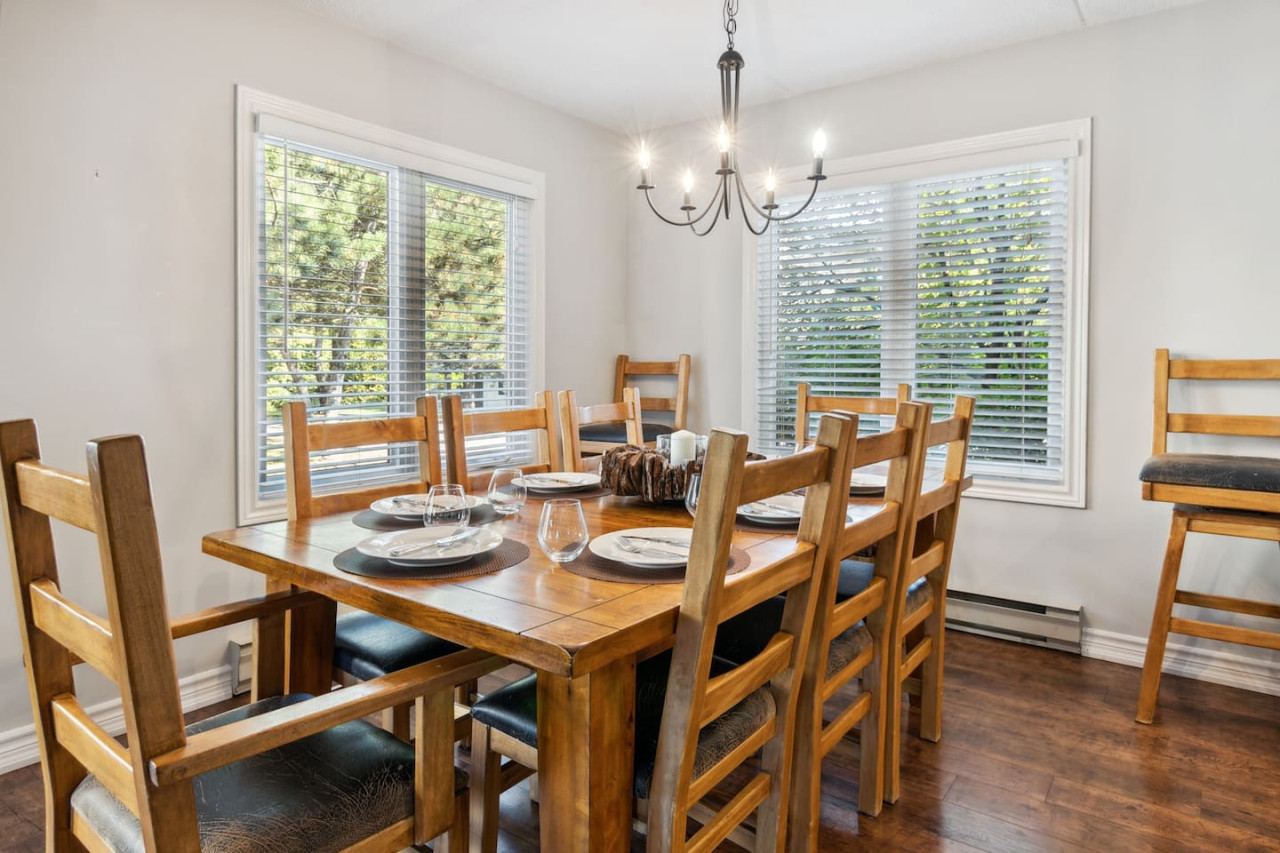 The kitchen is equipped with all cookware, bakeware, cutlery, utensils, and a drip coffee maker - all you need is your food, spices, and coffee/filters! The dining space seats 8, allowing everyone to gather on nights you’re not dining at one of Blue’s local restaurants.