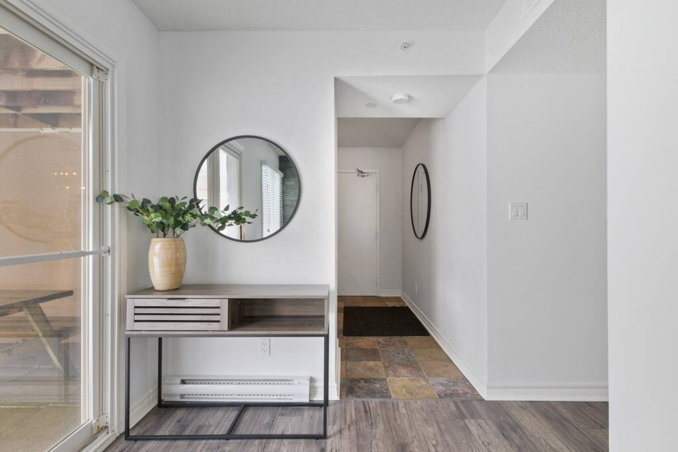 This ground-floor unit has been upgraded from top to bottom with contemporary finishes and modern furnishings. As you step inside, the large foyer leads to the open concept space with direct views of the mountains through the windows. Escape for a moment through the walk-out patio that overlooks the ski hill with your morning coffee or relax by the stone fireplace. Freshly painted and decorated with stylish interiors, this unit feels like your personal oasis steps to outdoor adventure. One floor living is made possible, with two generously sized bedrooms on the main floor. Upstairs, you’ll find another large bedroom and 3-piece ensuite to accommodate 4 more guests.