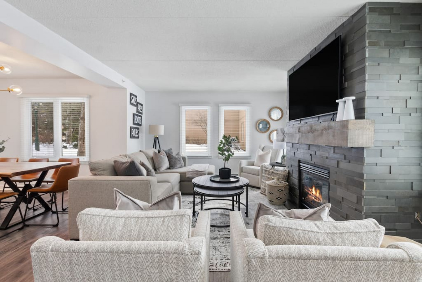 This central hub for everything the area offers is just 5 minutes to the Scenic Caves, Northwinds Beach, private ski clubs, Scandinave Spa, and just over 10 minutes to downtown Collingwood. Book your stay at this four-season getaway with tasteful décor and the mountains right outside your window.