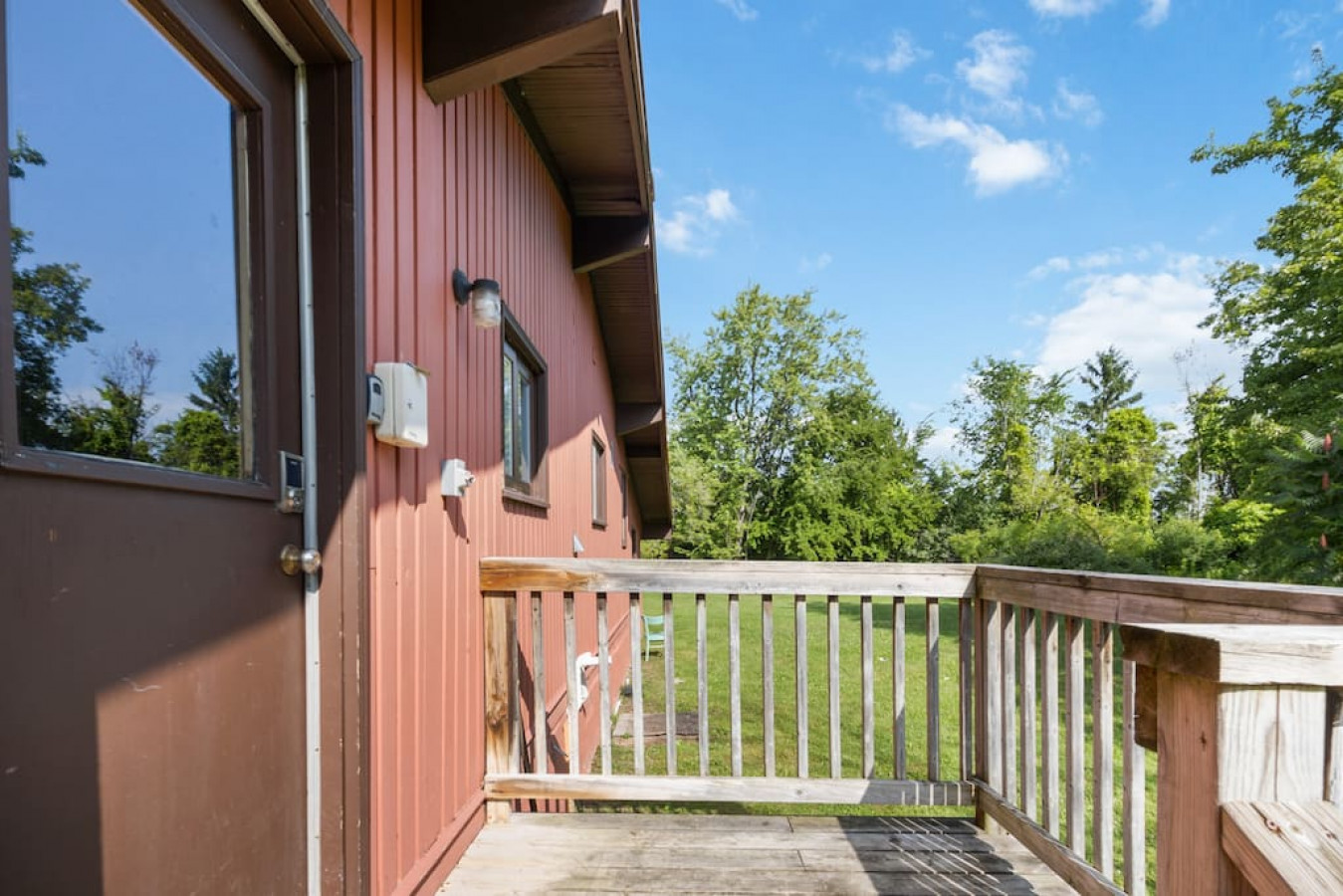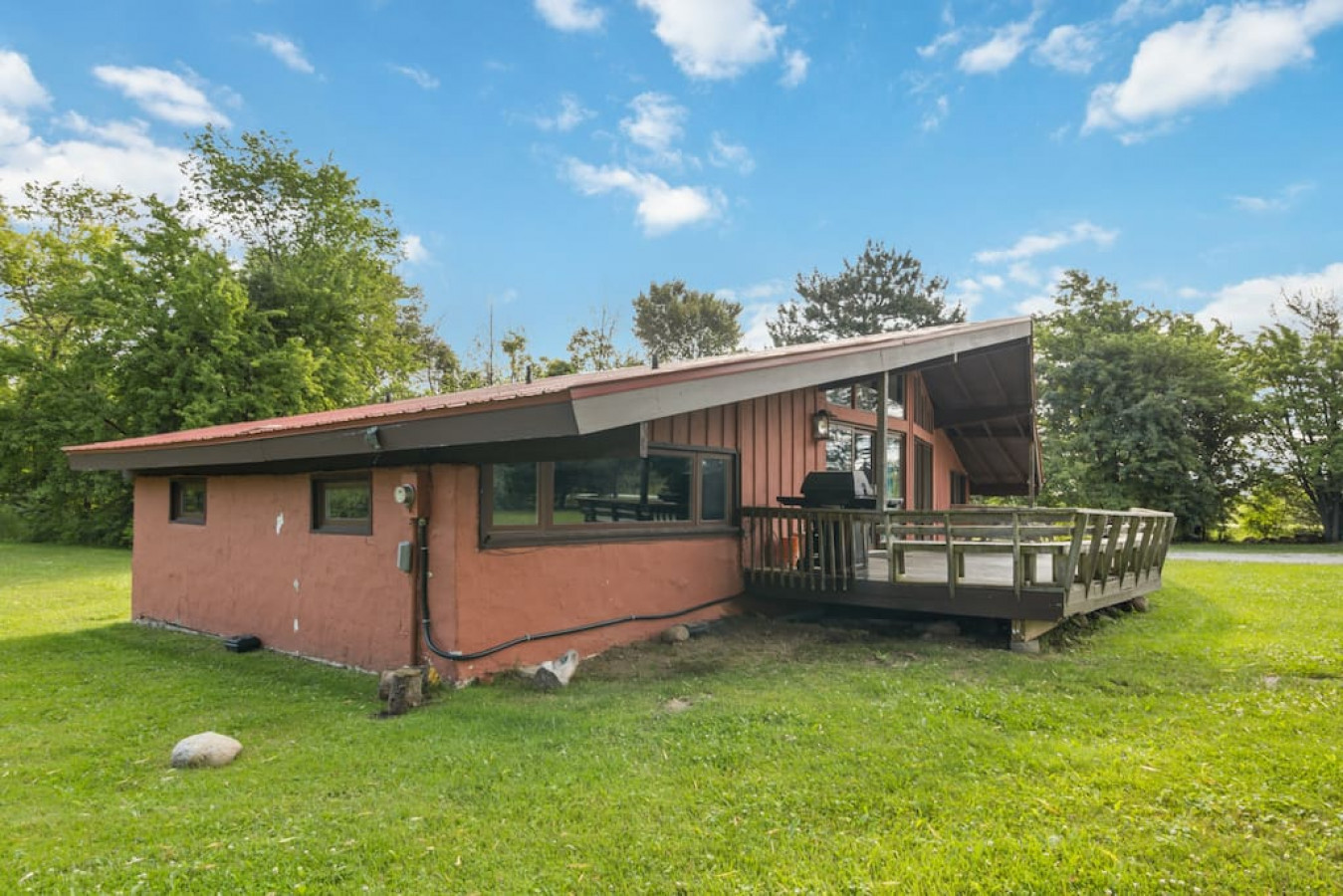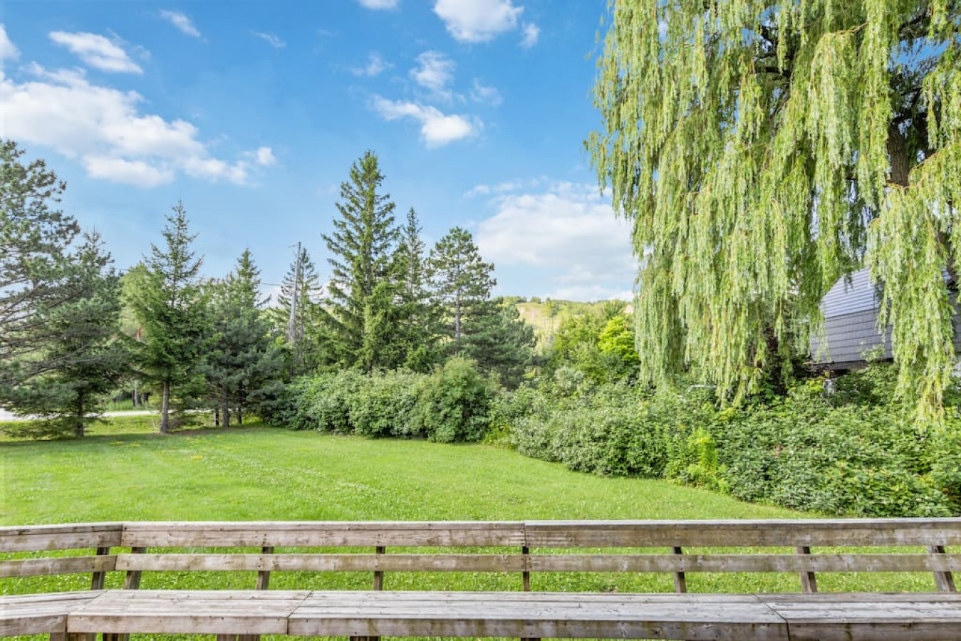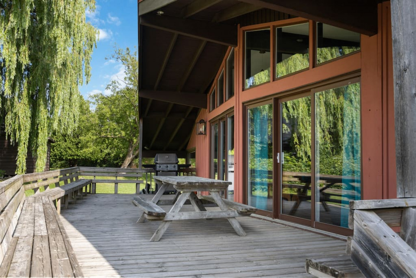 Step outside onto the spacious deck and immerse yourself in the beauty of nature. Breathe in the fresh mountain air as you sip your morning coffee or share meals at the large picnic table. Enjoy the panoramic views stretching before you, offering a serene backdrop for relaxation and connection.